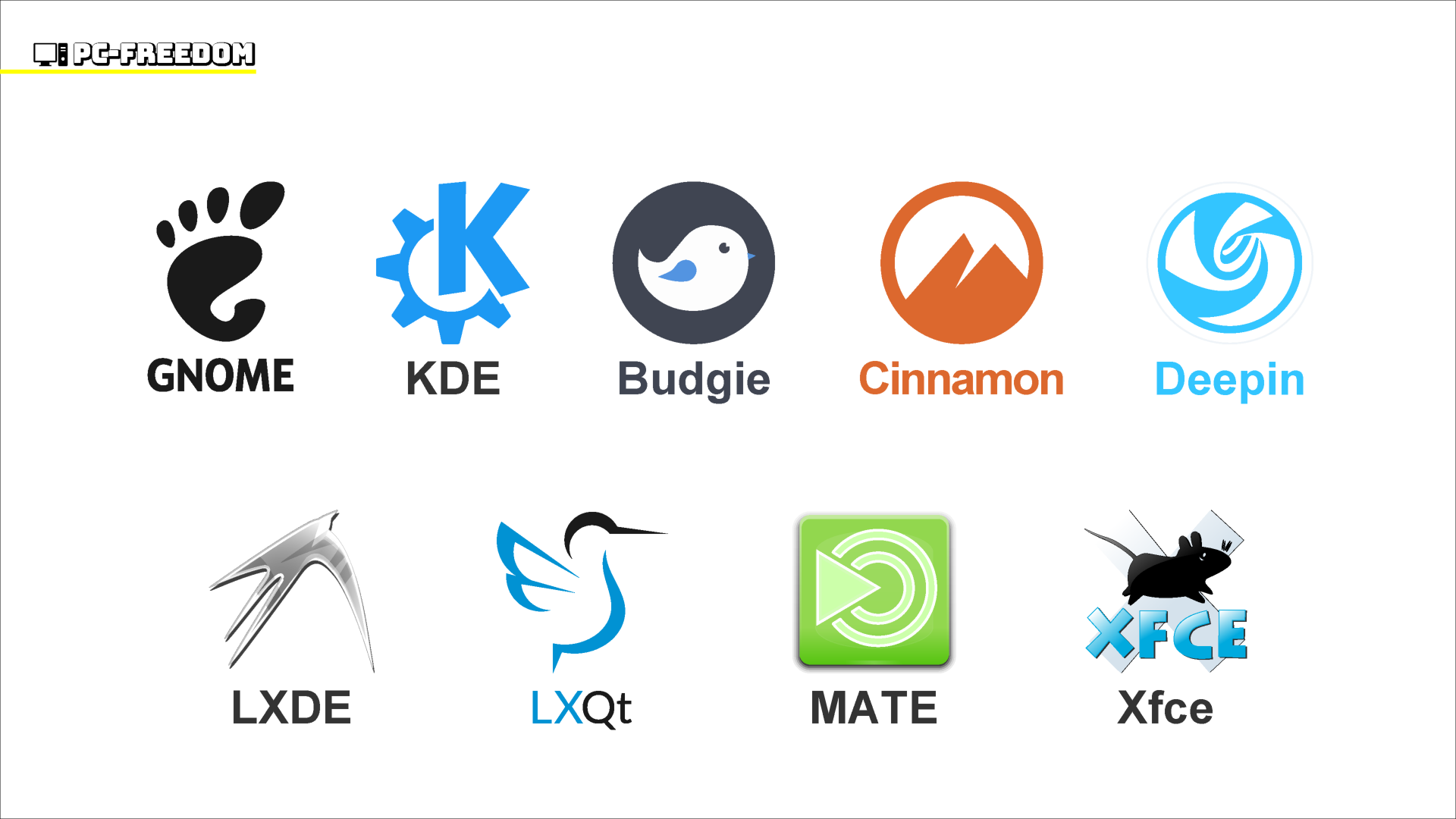 他にもいろいろとありますが、まずはこの代表的な9種類のデスクトップ環境を確認しておきましょう。