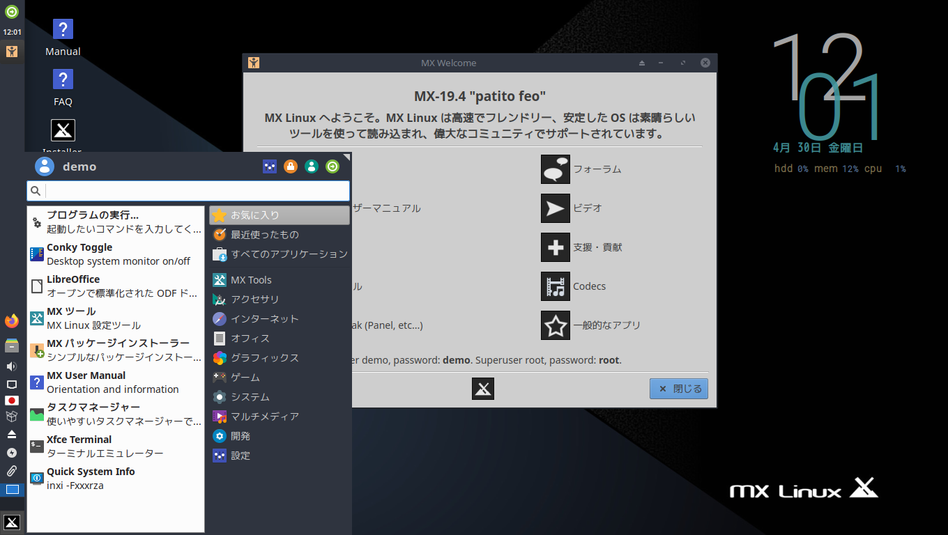 んでこうなると、更におまけでおすすめしたいのが、個人的に Xfce の Debian 系といえば MX Linux は外せません。