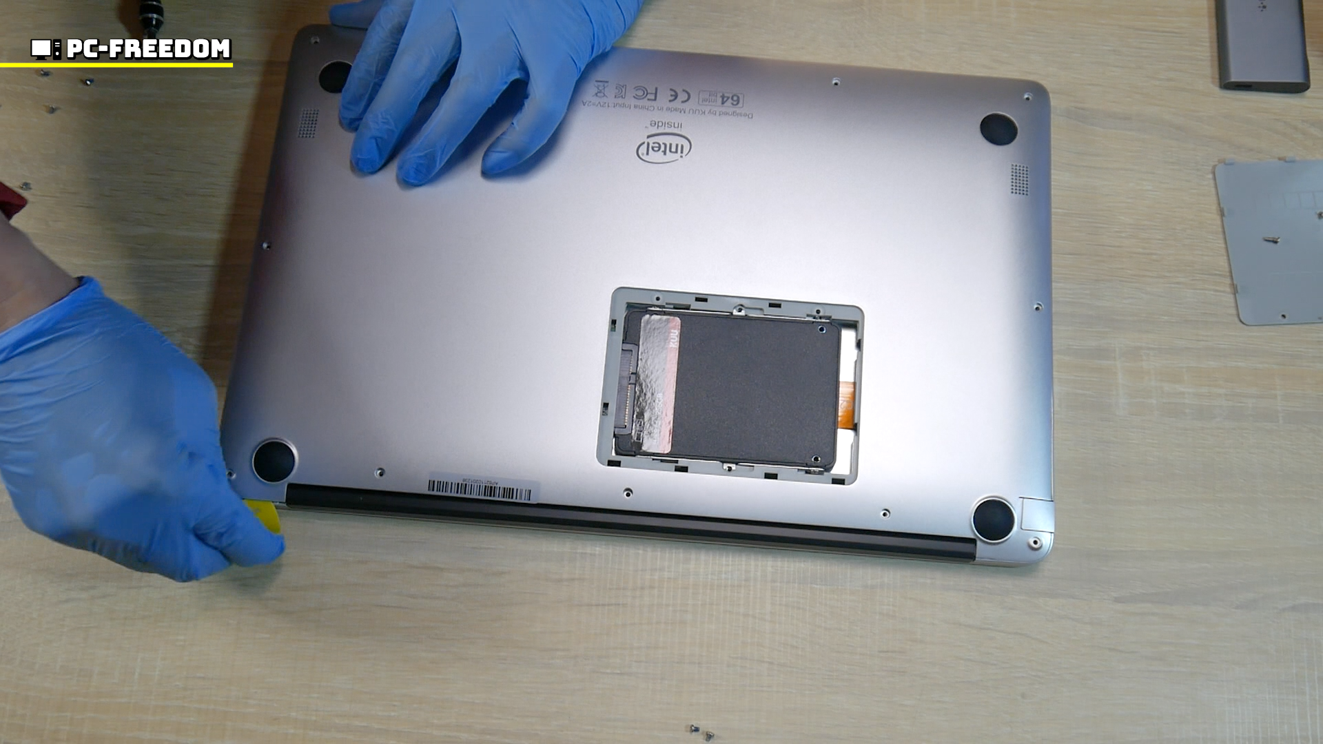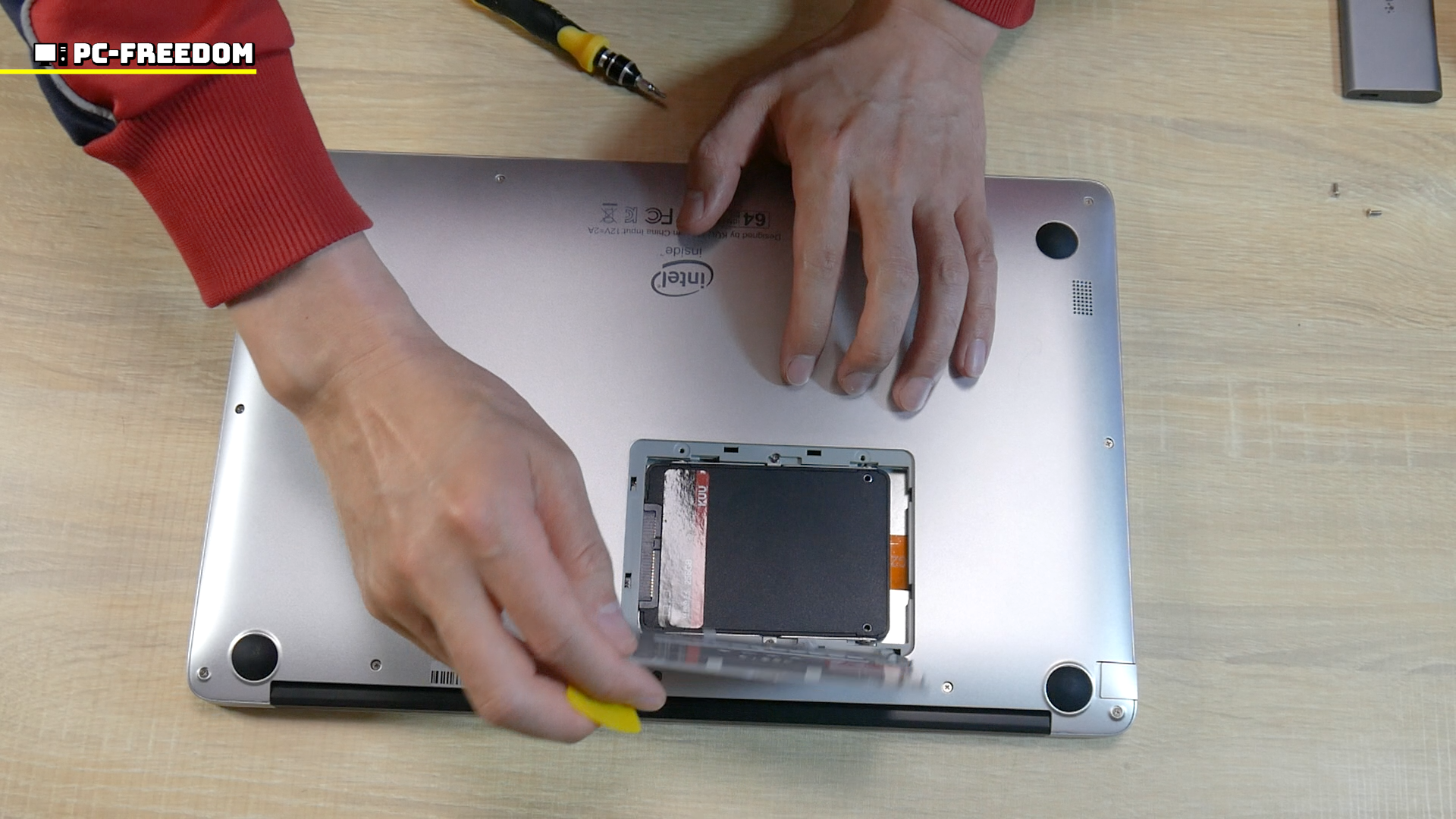 窓を開けると中には普通に SATA 接続の SSD が入っています。