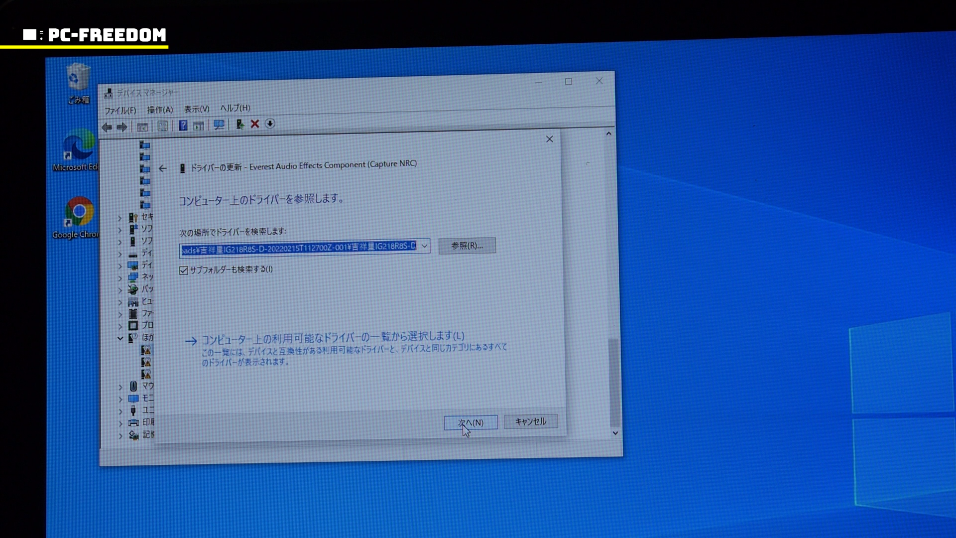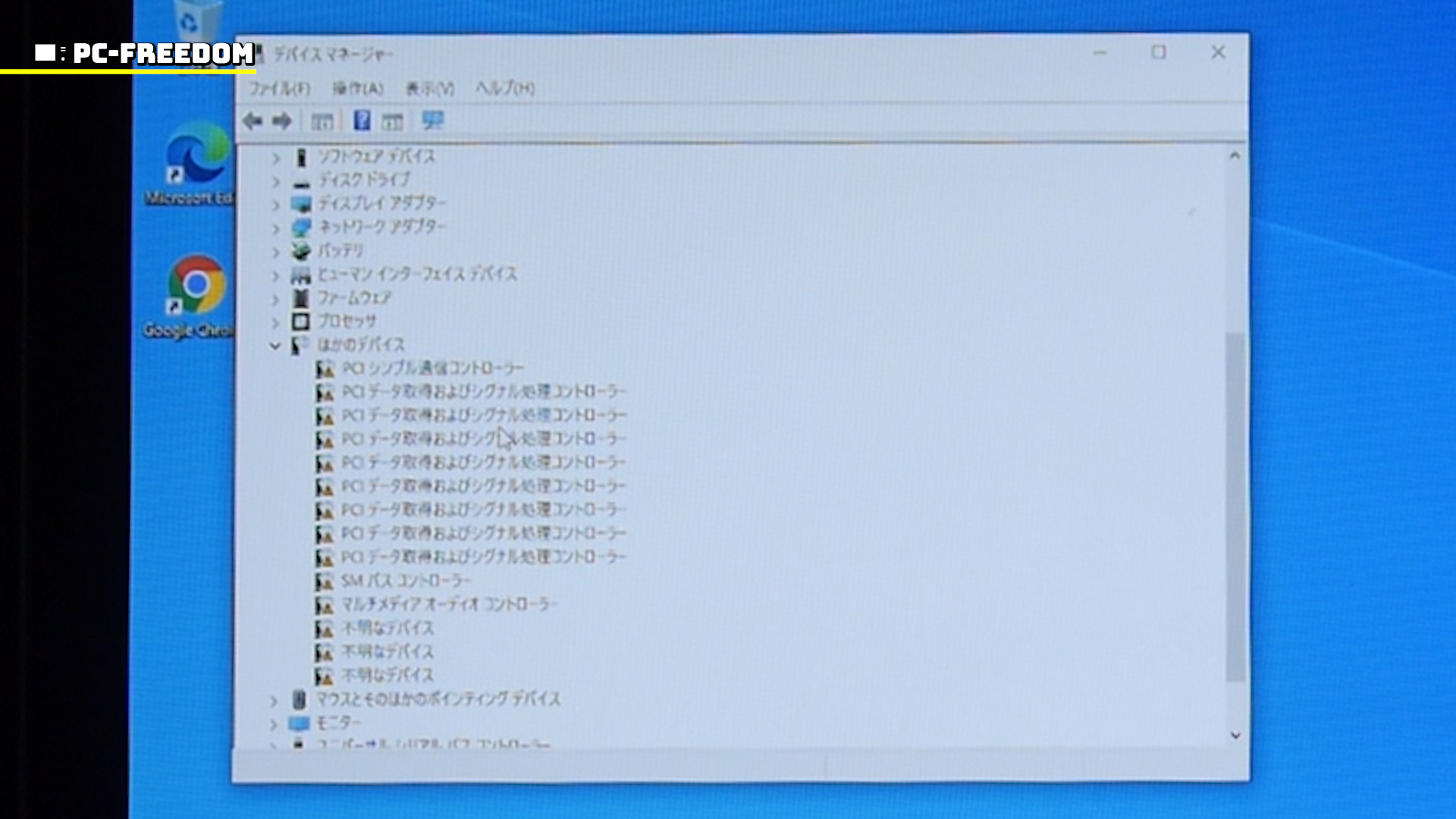 とりあえず、三角が付いたデバイスのドライバ更新を一個ずつやっていきました。