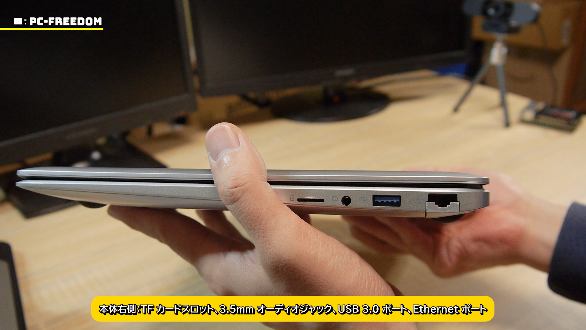 本体右側には TF カードスロットと 3.5mm オーディオジャック、USB 3.0 のポートと Ethernet ポート。