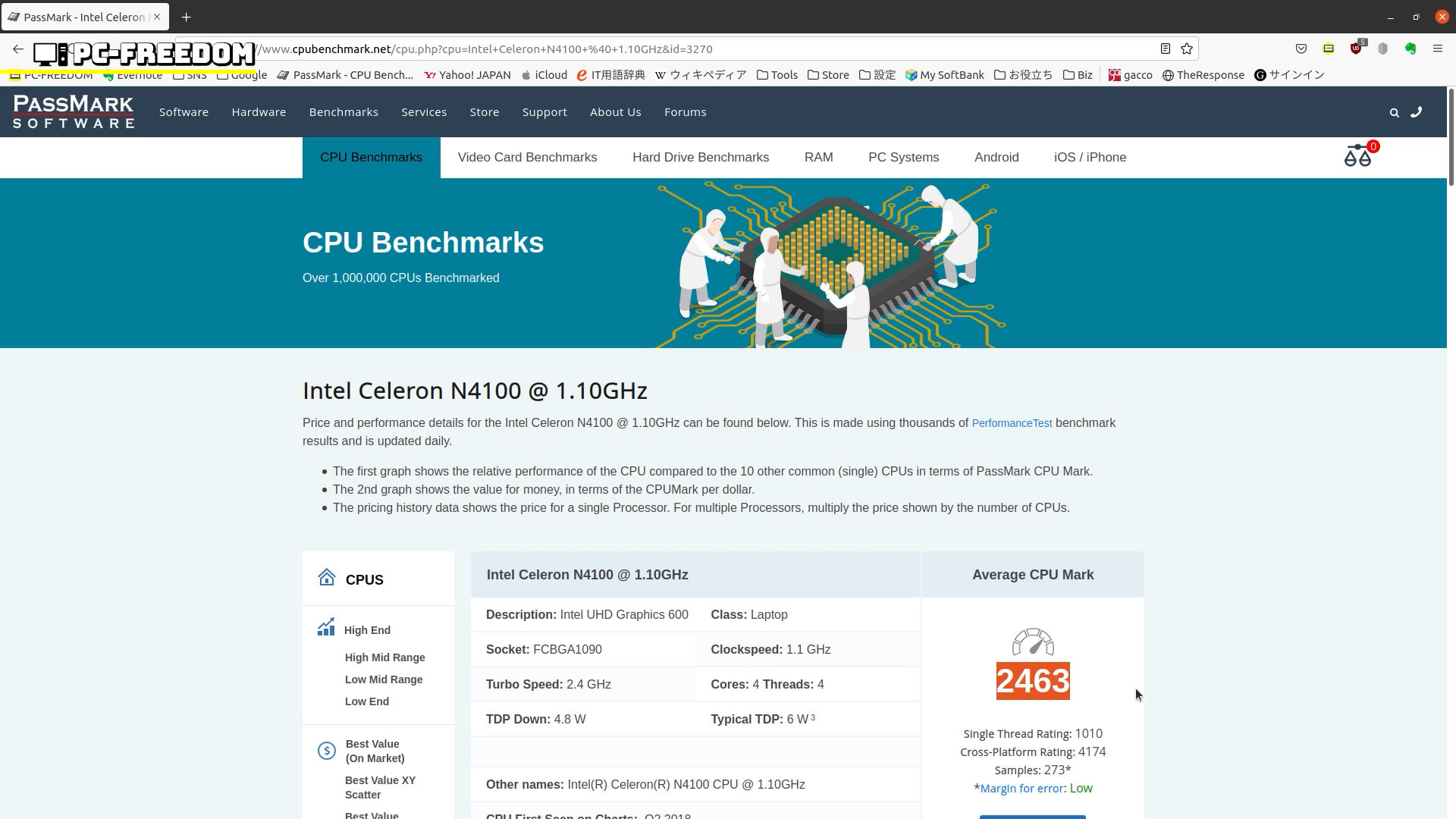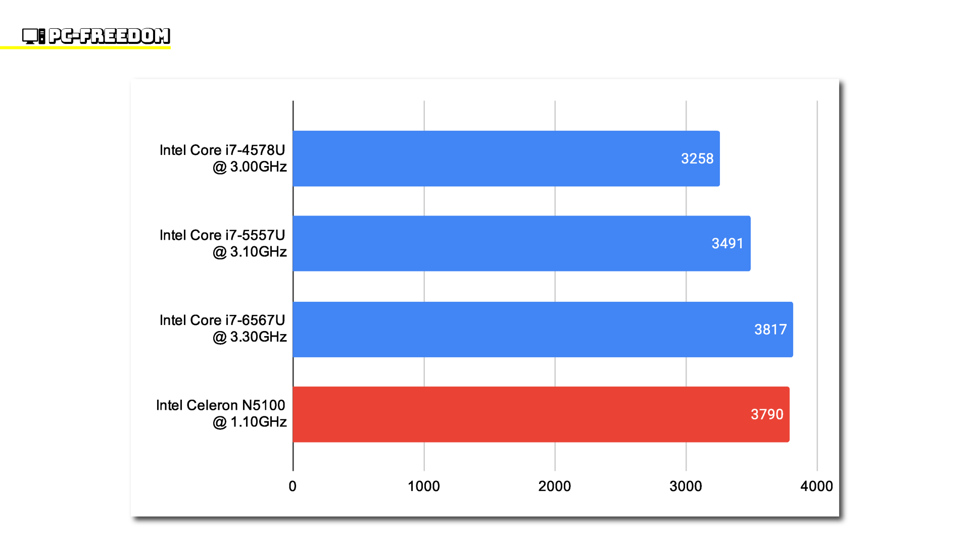 ちなみに登場したばかりで、まだ搭載マシンが殆どありませんが、新しい Celeron N5100 のスコアは当然ですがさらに高いです。