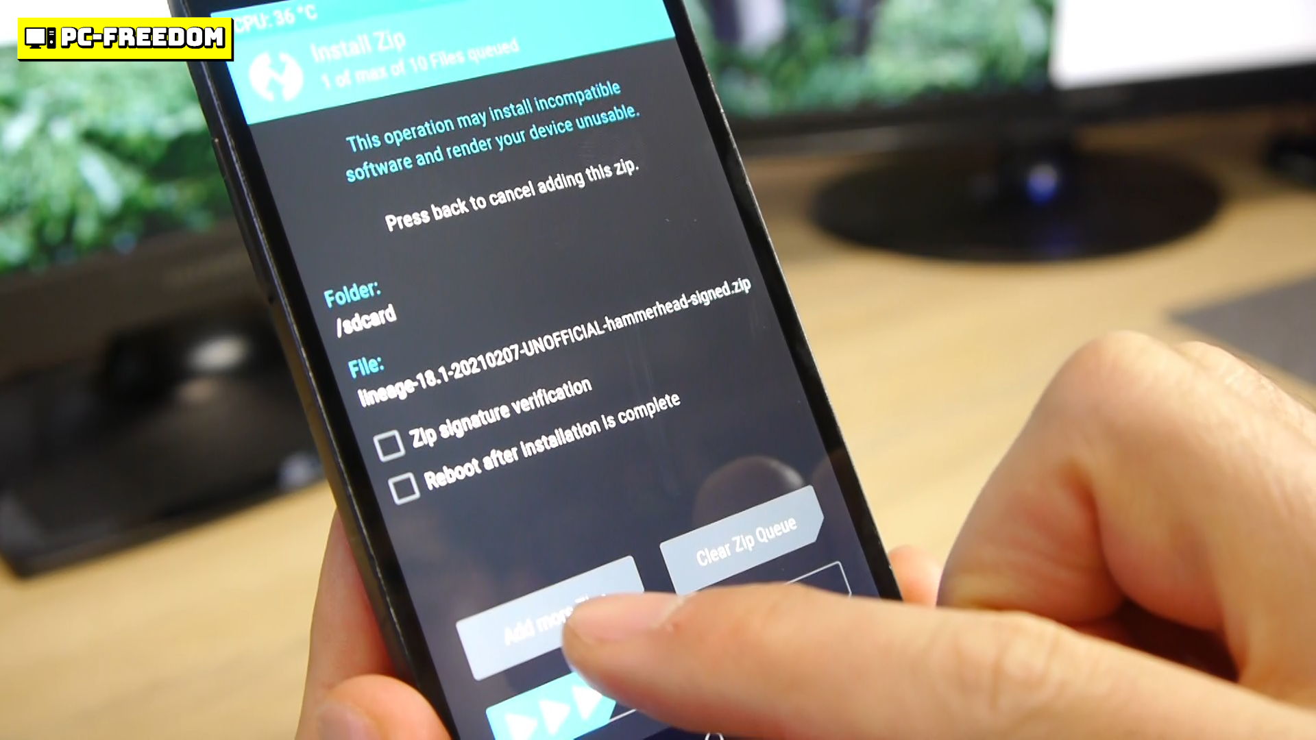 あとは画面下の「Swipe to confirm flash」をスワイプしてインストールを実行します。