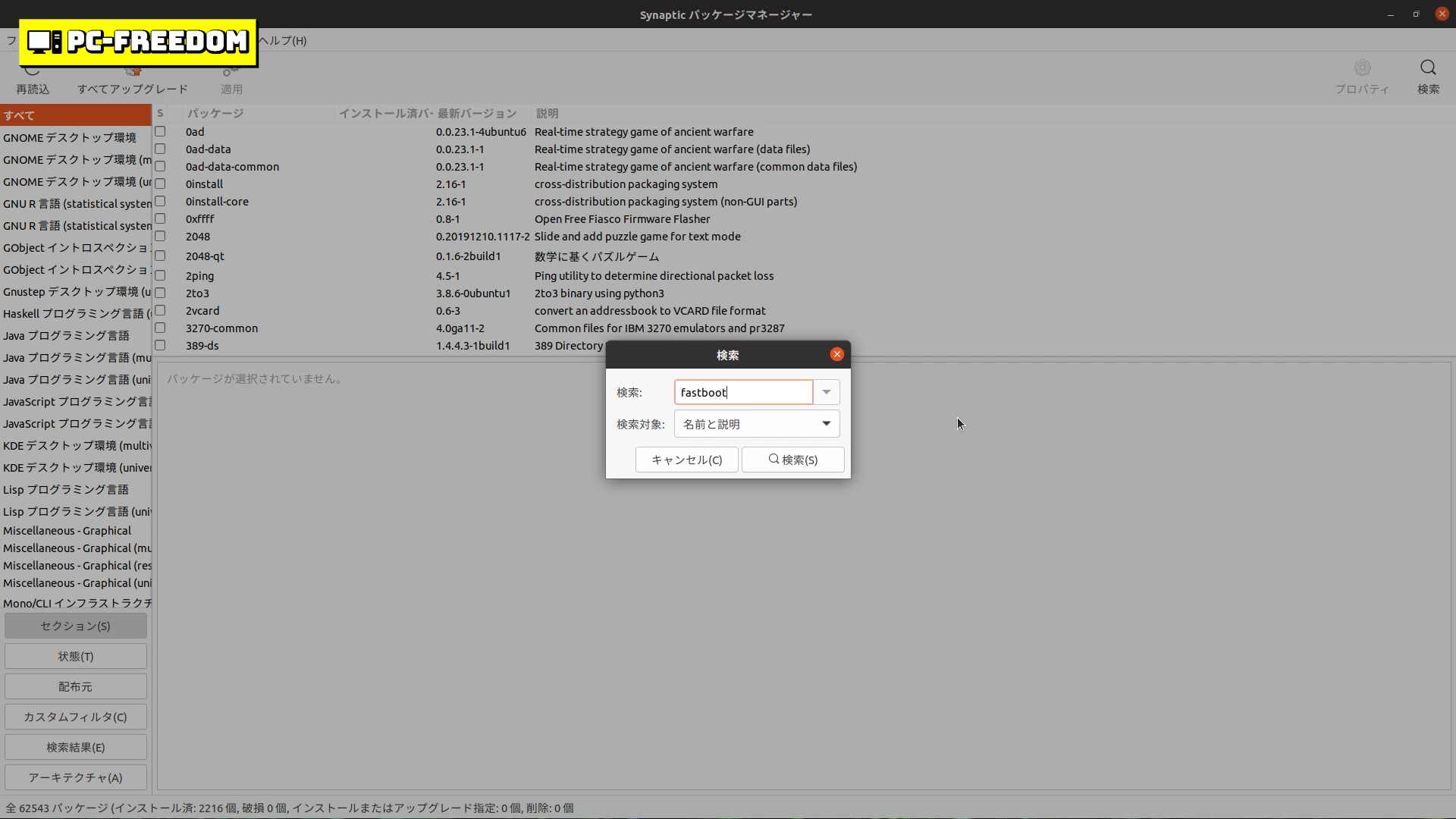 GUI のパッケージ管理は、やっぱり Synaptic ですね。