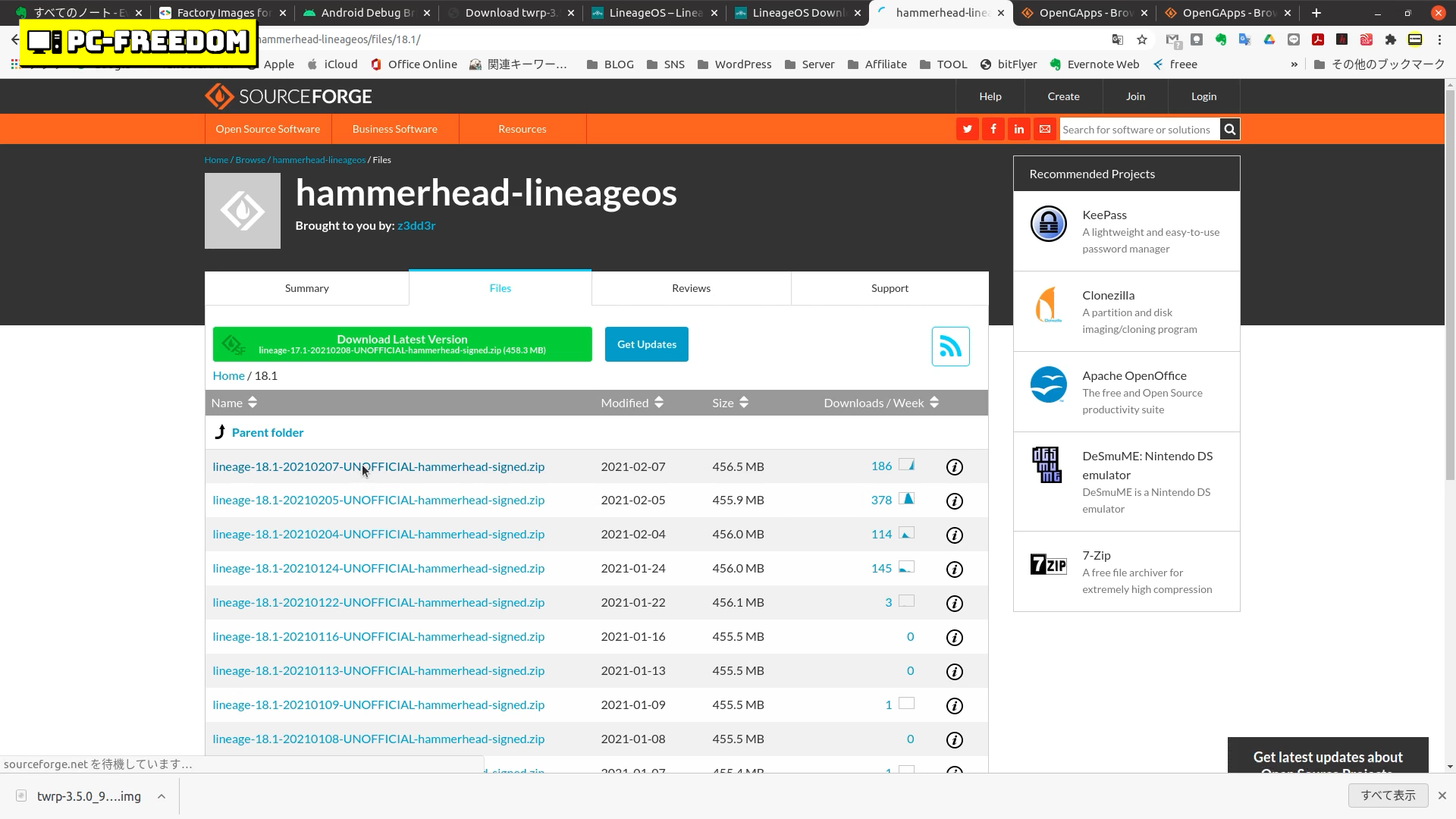 - カスタムROM= lineage-18.1-20210207-UNOFFICIAL-hammerhead-signed.zip
