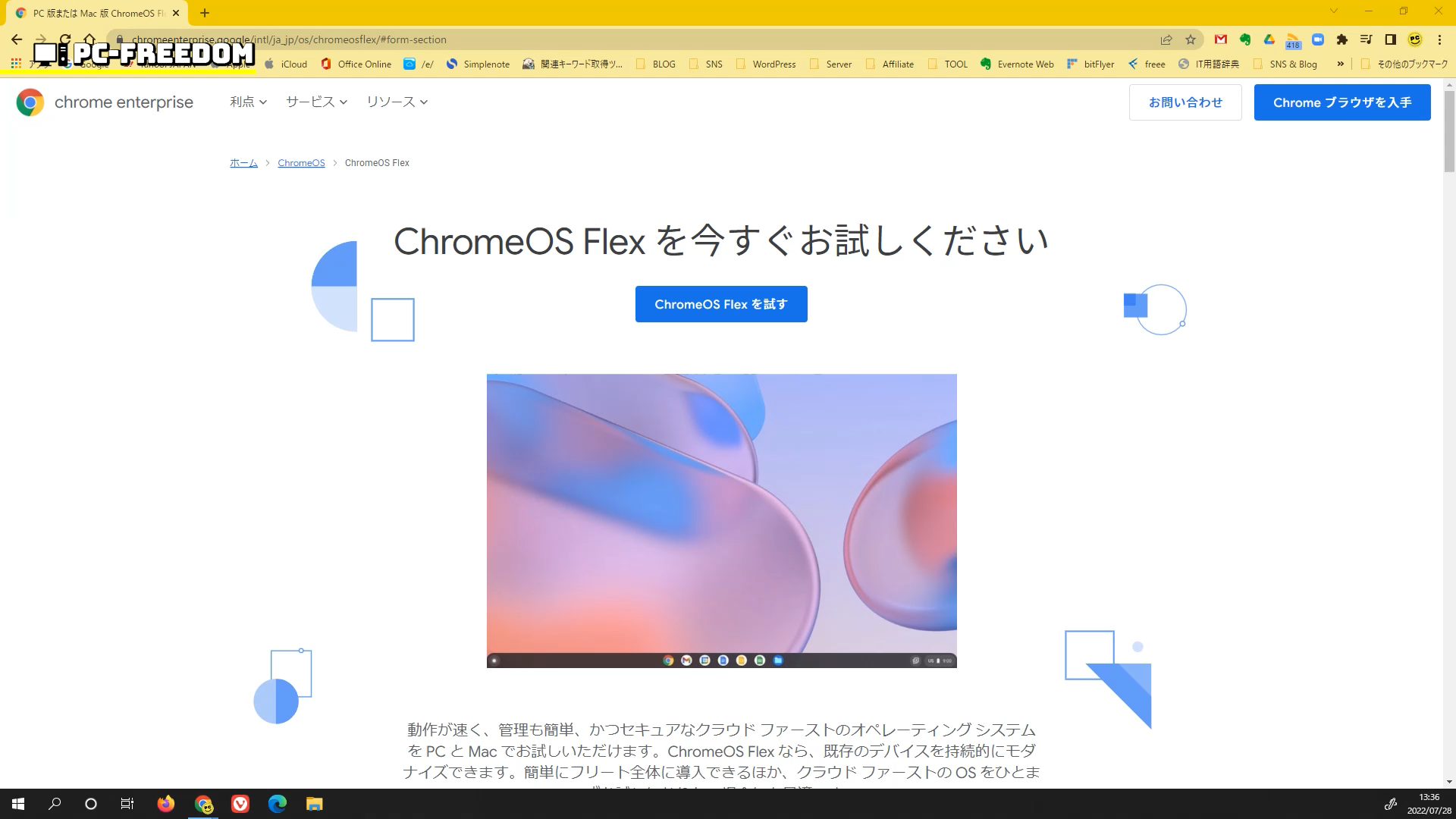 Chrome OS Flex は企業や学校向けに無償公開されており、古くなった Windows マシンなどにインストールし Chromebook として再利用することができます。