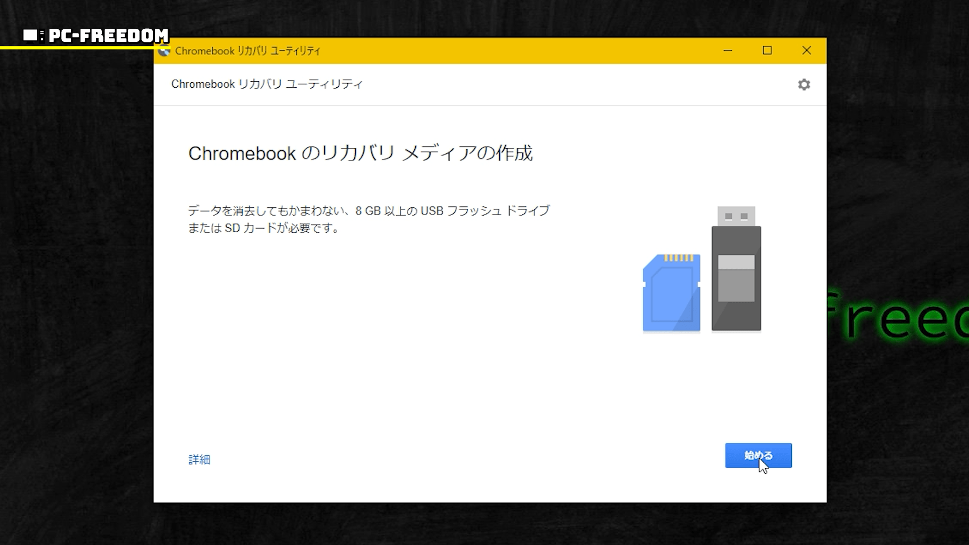 - Chrome に Chromebook リカバリーユーティリティをインストールします。