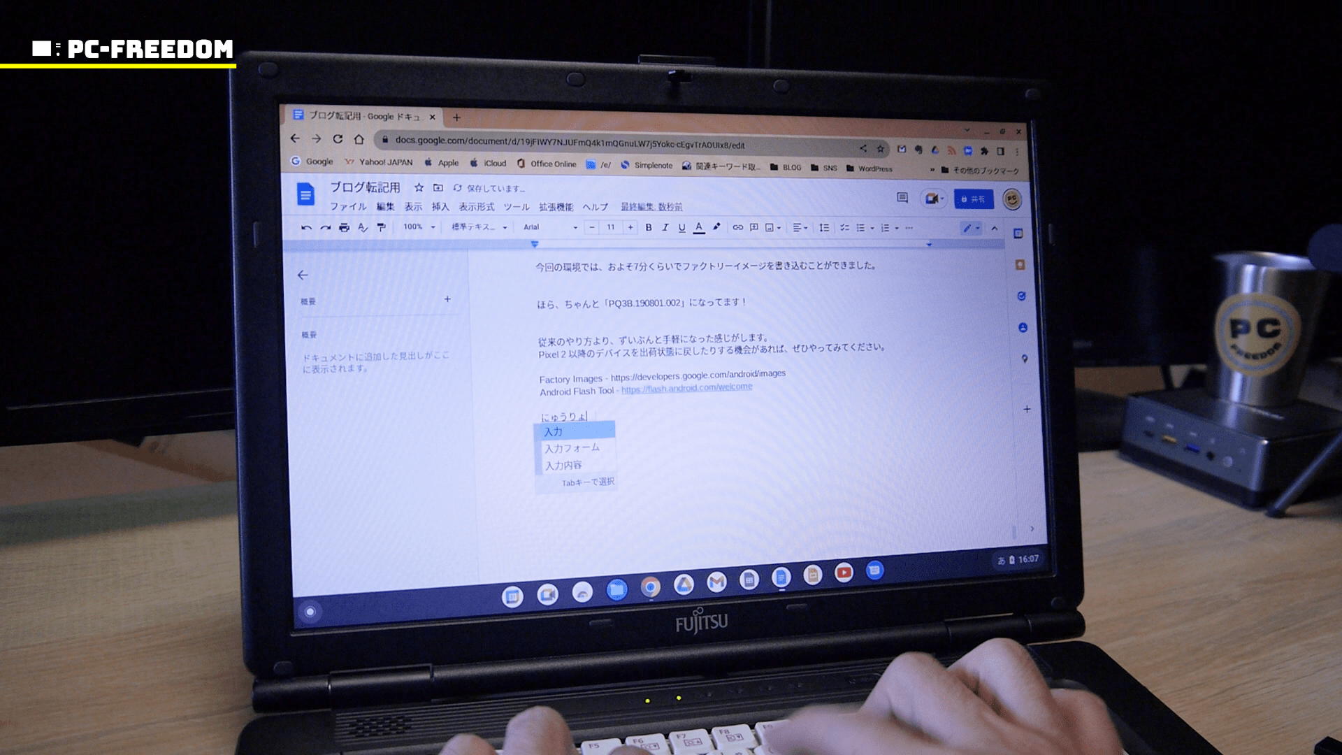 また、Google Docs も軽く使ってみましたが、普通にドキュメント作成をする程度であれば何ら問題ありません。