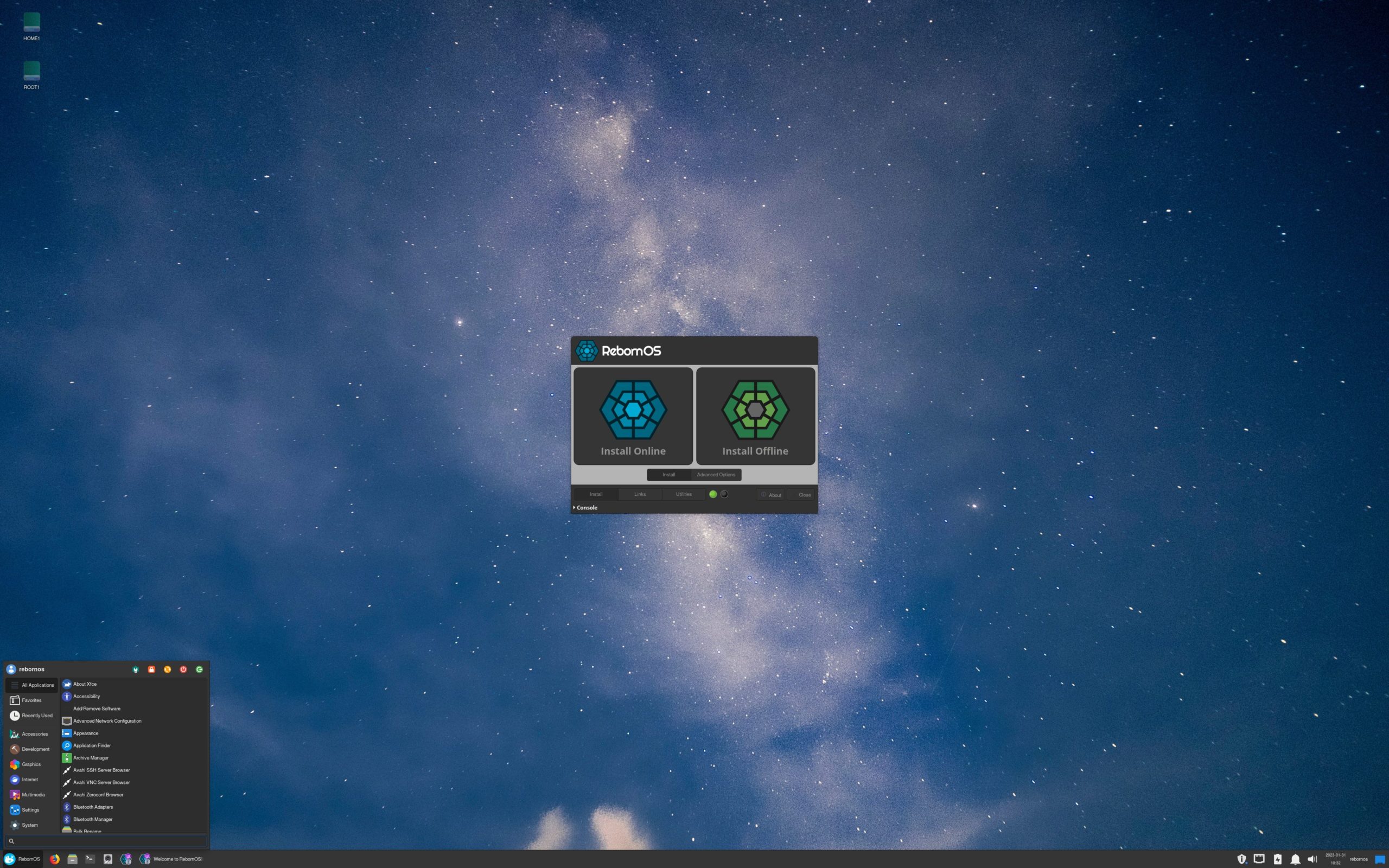 - RebornOS Fire ユーティリティ: システムの調整や新しいデスクトップのインストール、プログラムの追加が簡単にできるツール。