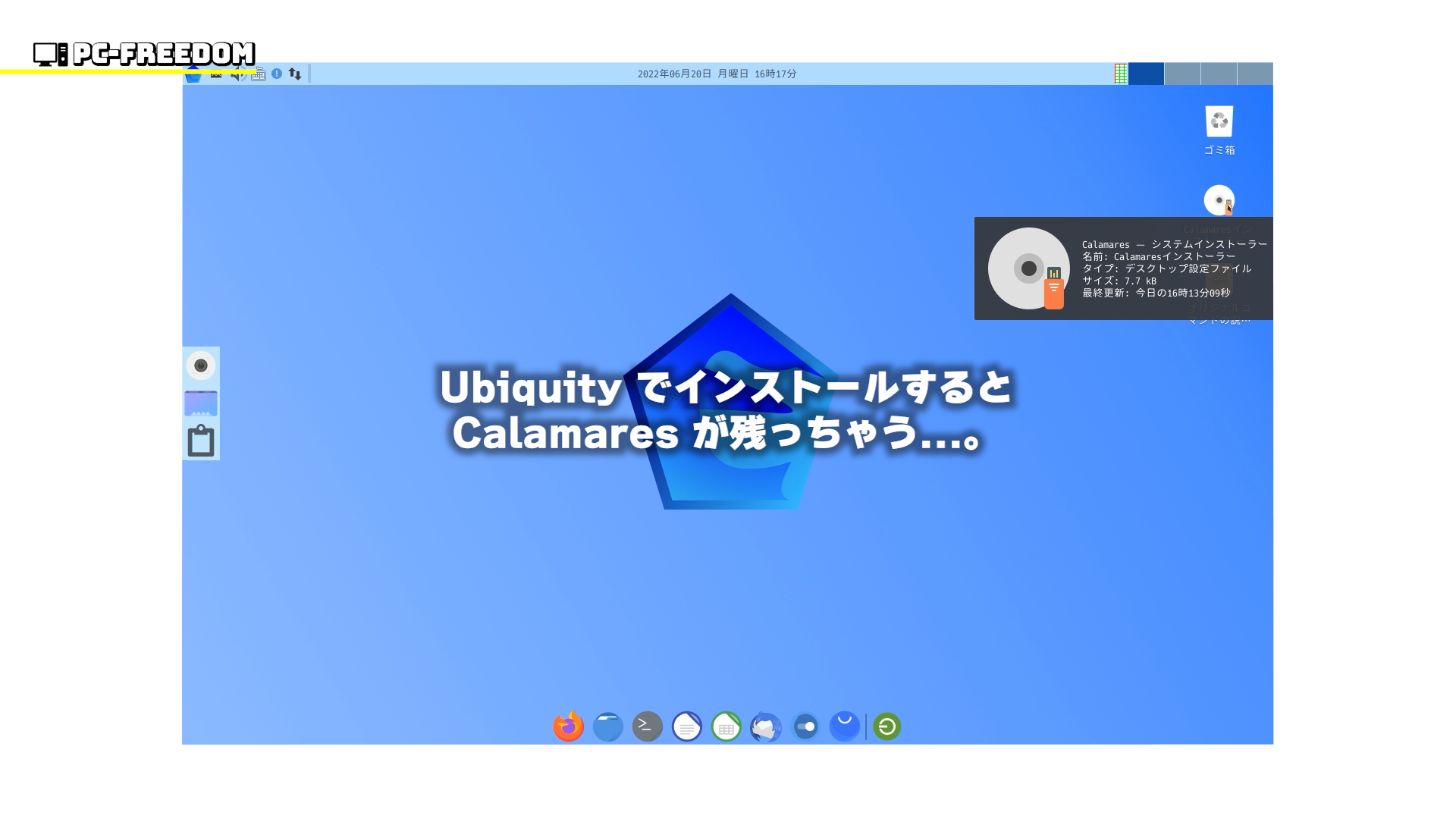 ただ、一個気になったのは、Ubiquity でインストールした際に Calamares が残ってしまうこと。