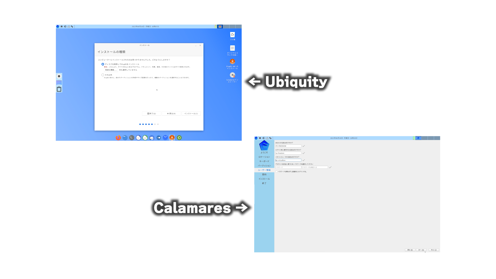 Ubuntu 系の定番インストーラー Ubiquity と、人気の高いインストーラー Calamares です。