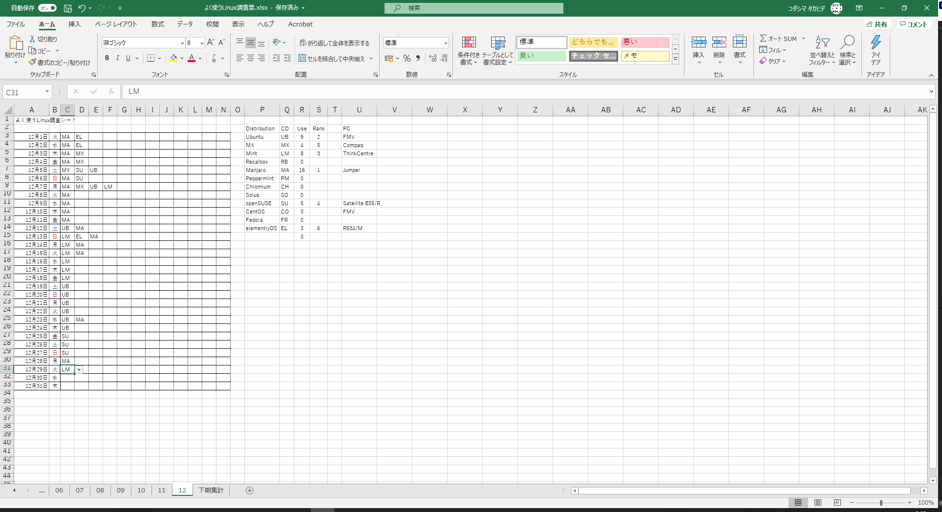 今回はコダシマが2020年7月~12月までに、デスクトップ OS として実機にインストールして使った Linux のなかで、