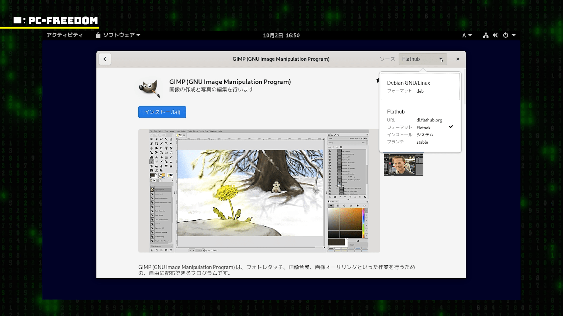 また Flatpak の場合、Snap や従来のパッケージ管理のソフトとの共存ができるというのも特徴です。
