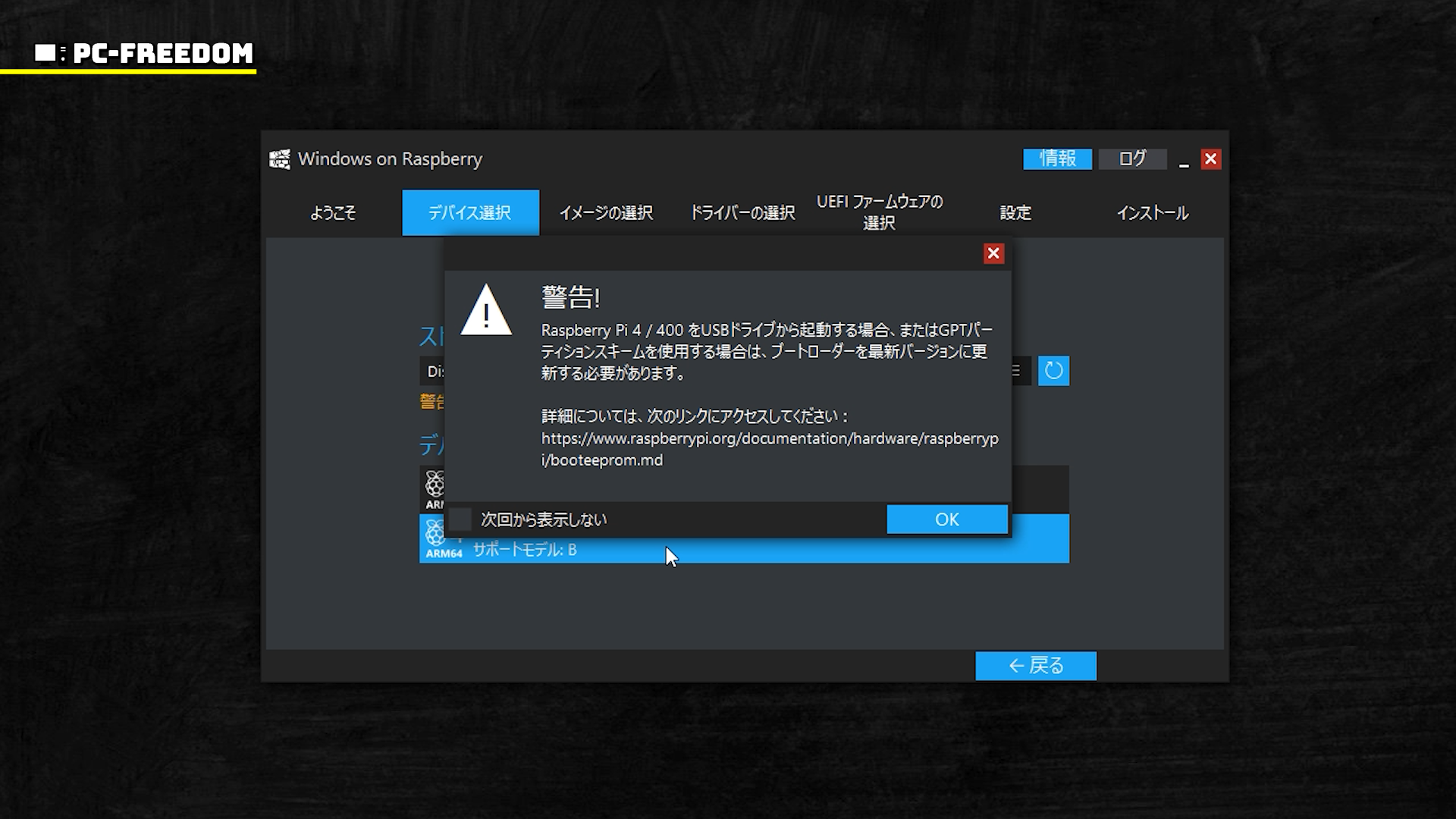 内容は USB ドライブから起動する場合や GPT パーティションを使う場合には、Raspberry Pi のブートローダーを最新バージョンにしておかないといけませんというやつです。