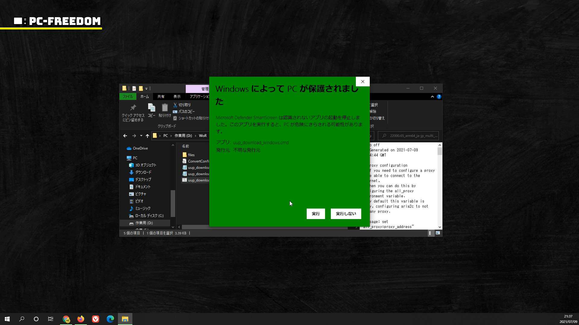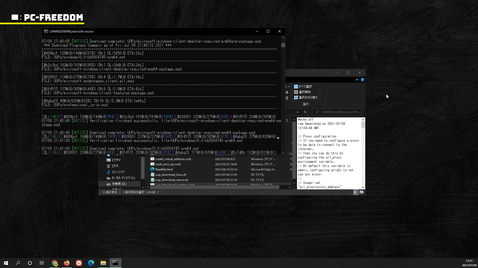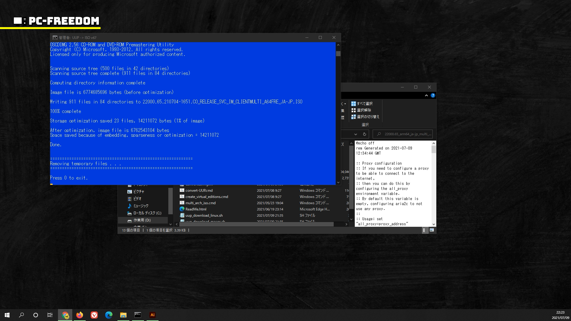 そう考えると、UUP ファイルをダウンロードして ISO イメージを作成することに違法性を感じません。
