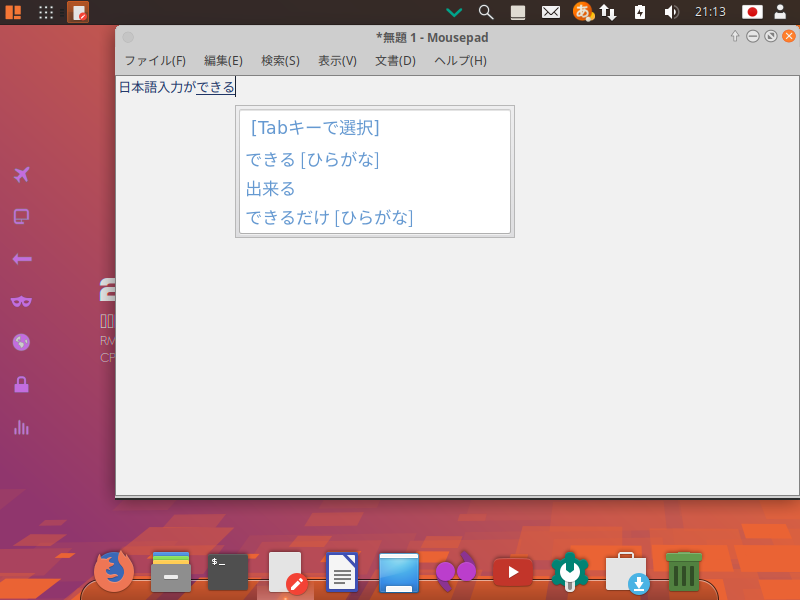 ただしインストール直後は、日本語の入力環境が完全ではないので、設定を調整する必要がある。