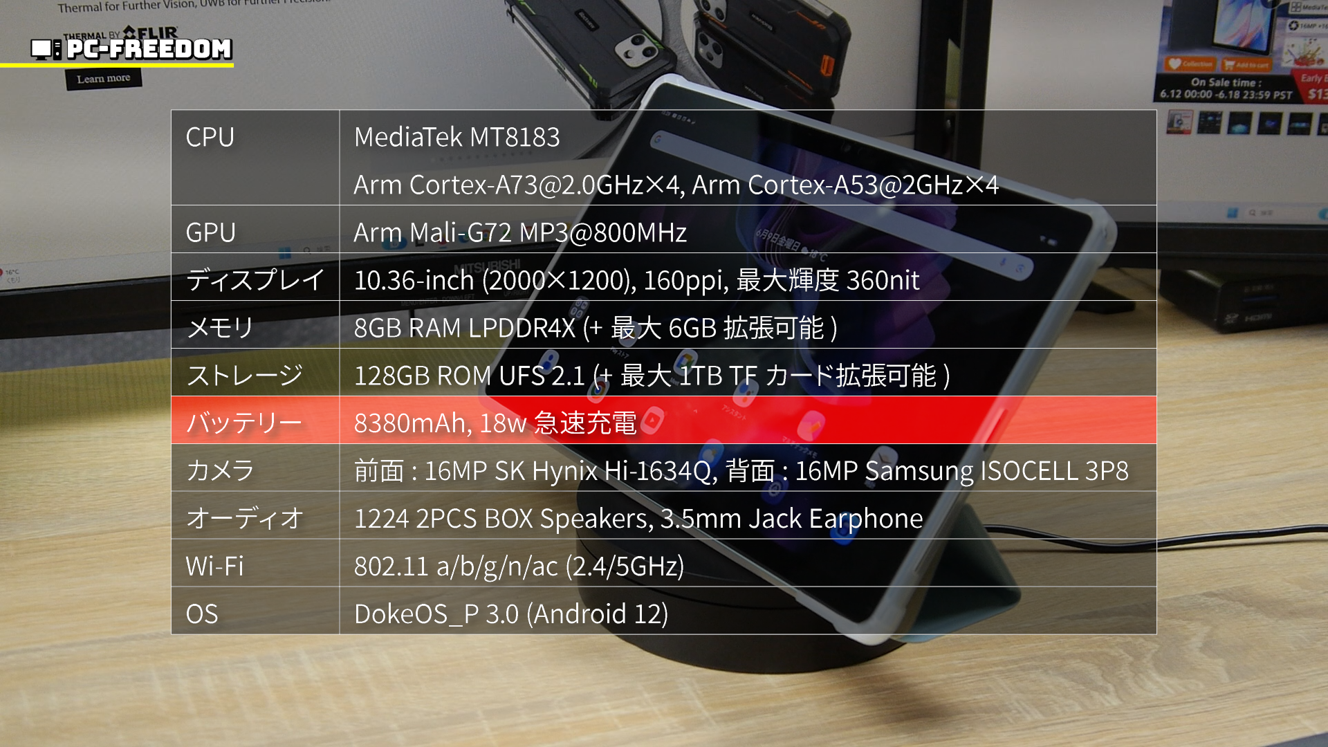 | バッテリー | 8380mAh, 18w 急速充電 |