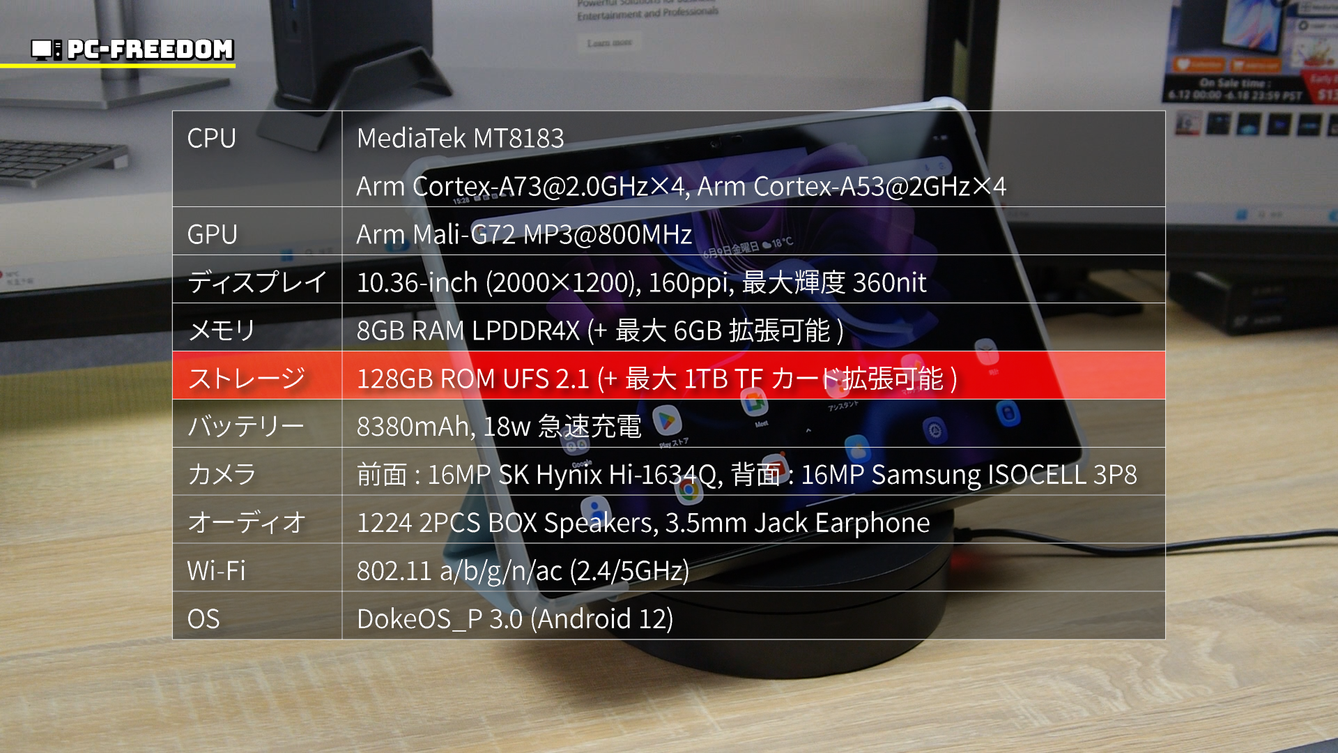 また Blackview Tab 11 WiFi では搭載されている容量に加えて、さらに最大 1TB までの TF カード (microSD カード) に対応しているため、ストレージの容量不足を心配する必要は一切ございません。