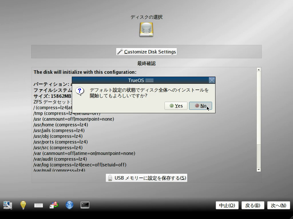 もちろん TureOS でもいちばん最初はパーティションの設定から始まる。