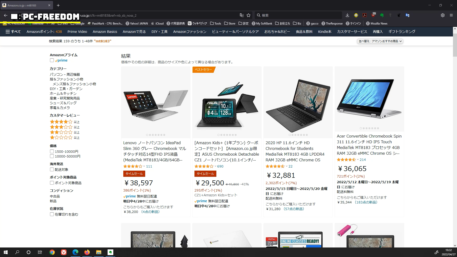 Amazon で MT8183 で検索してみると、出てくる!出てくる!Chromebook!