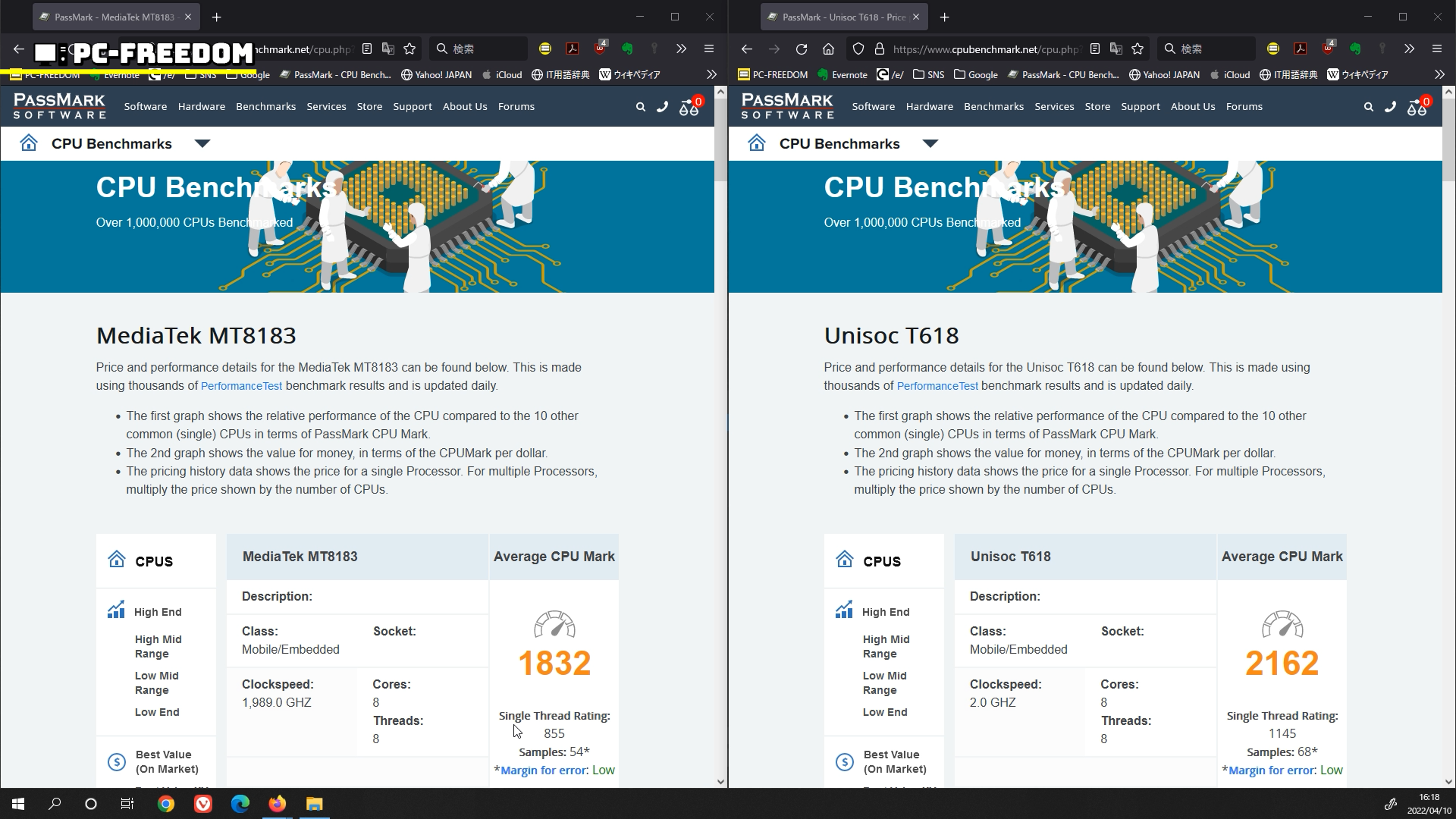 - MediaTek MT8183 とUnisoc T618 の比較