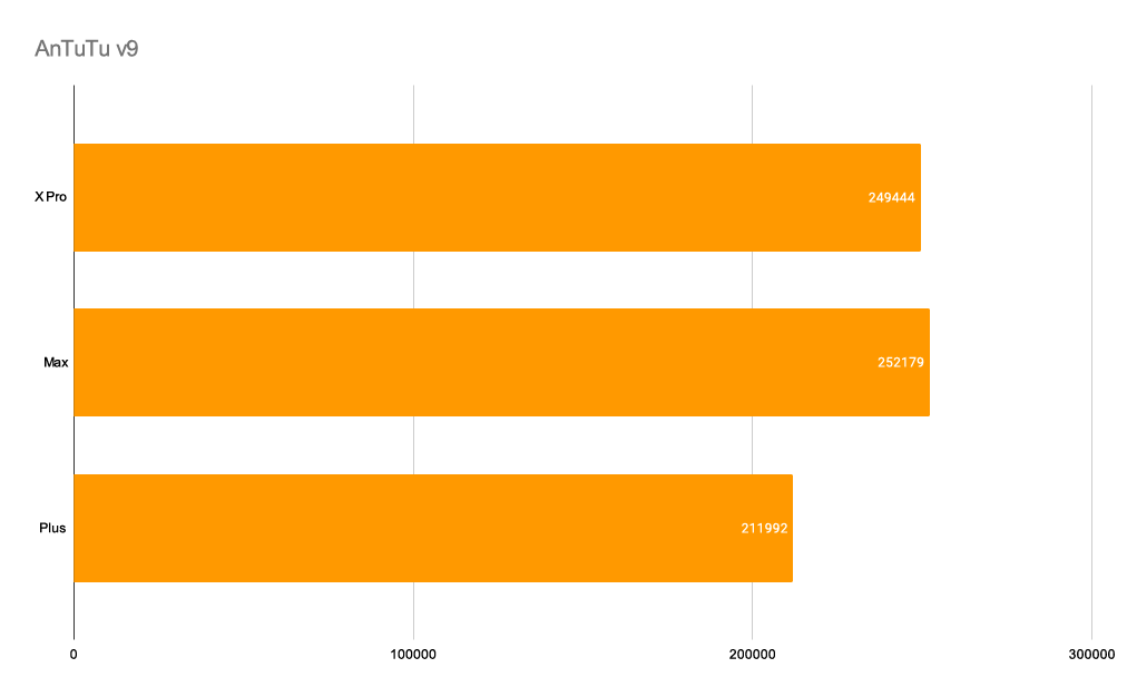 Antutu でのスコアは HiPad Plus よりもスコアが高く、HiPad Max より少し低いといった結果。