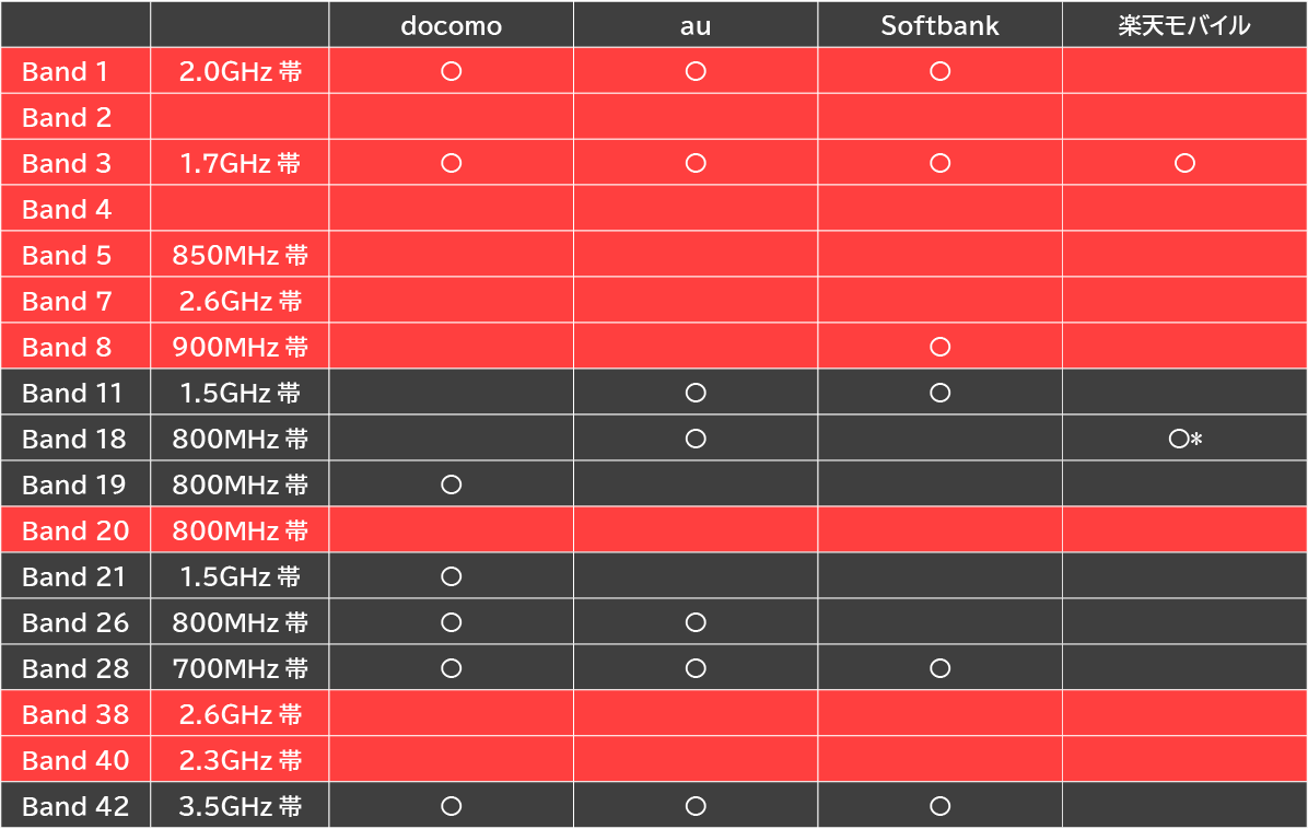やっぱりプラチナバンド帯は Softbank 回線のみが対応という、海外製品ではあるあるな対応状況です。