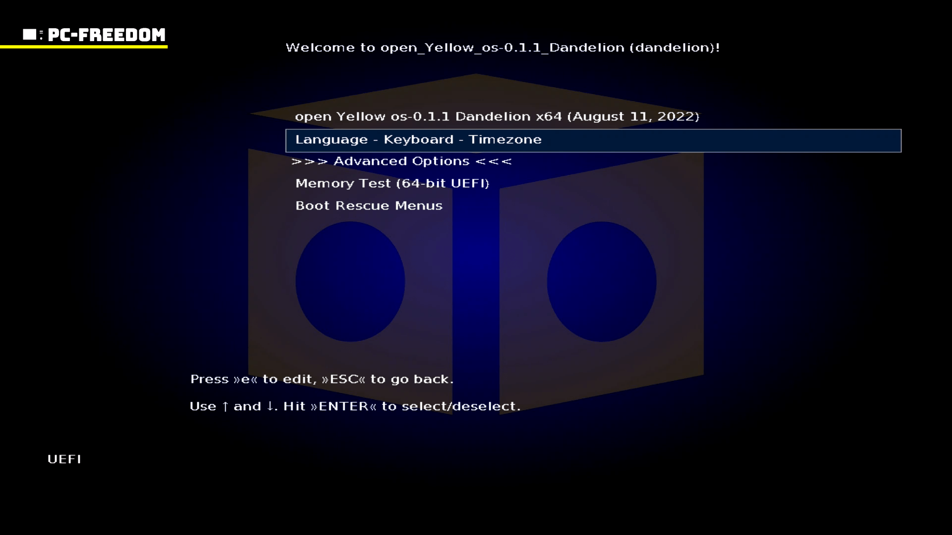 インストールする Linux は、現在開発中の open.Yellow.os です。