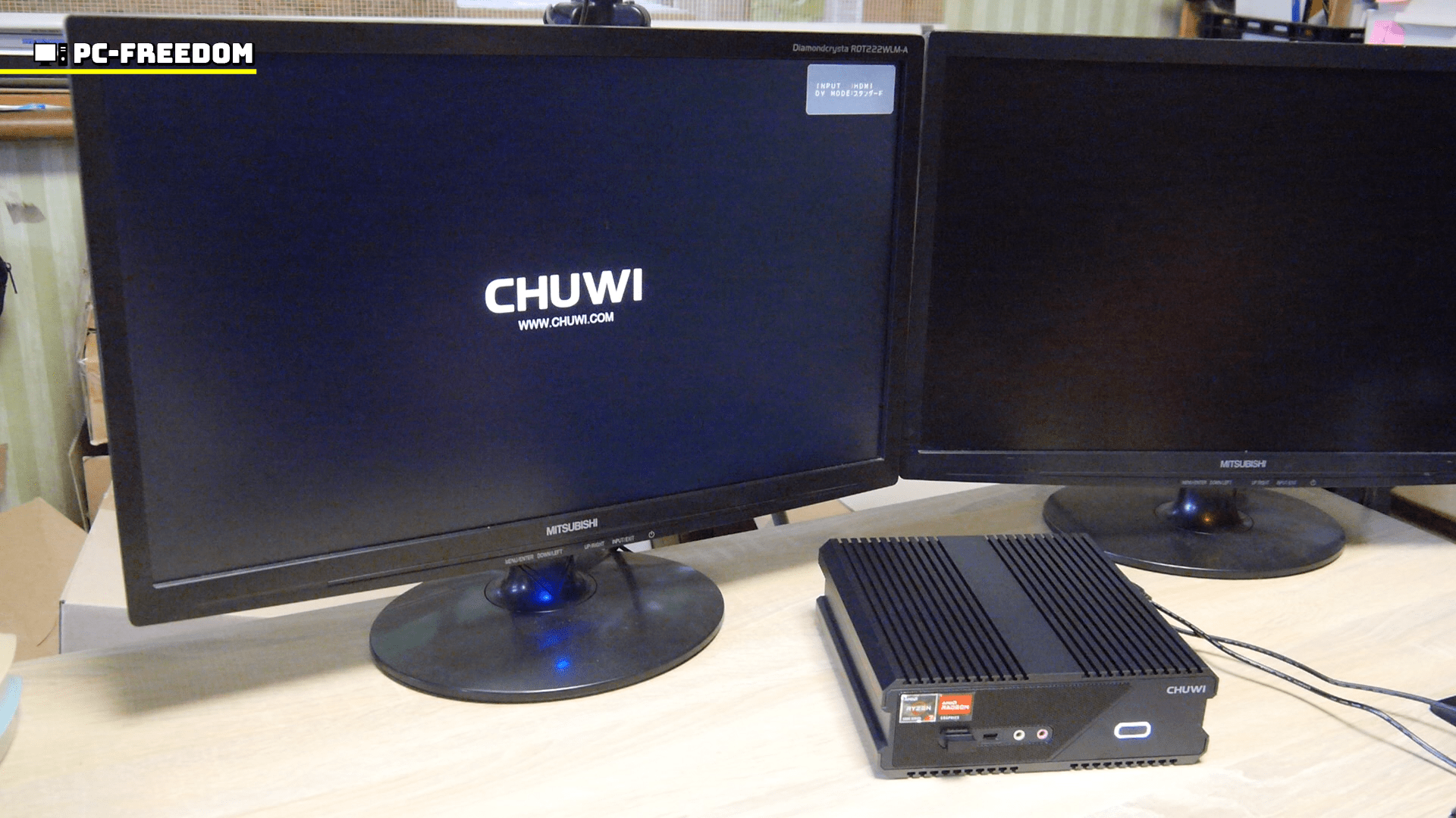 CHUWI のミニ PC の中ではだいぶ大きいく重量もありますが、それでも一般的なデスクトップ PC よりはかなりコンパクトです。