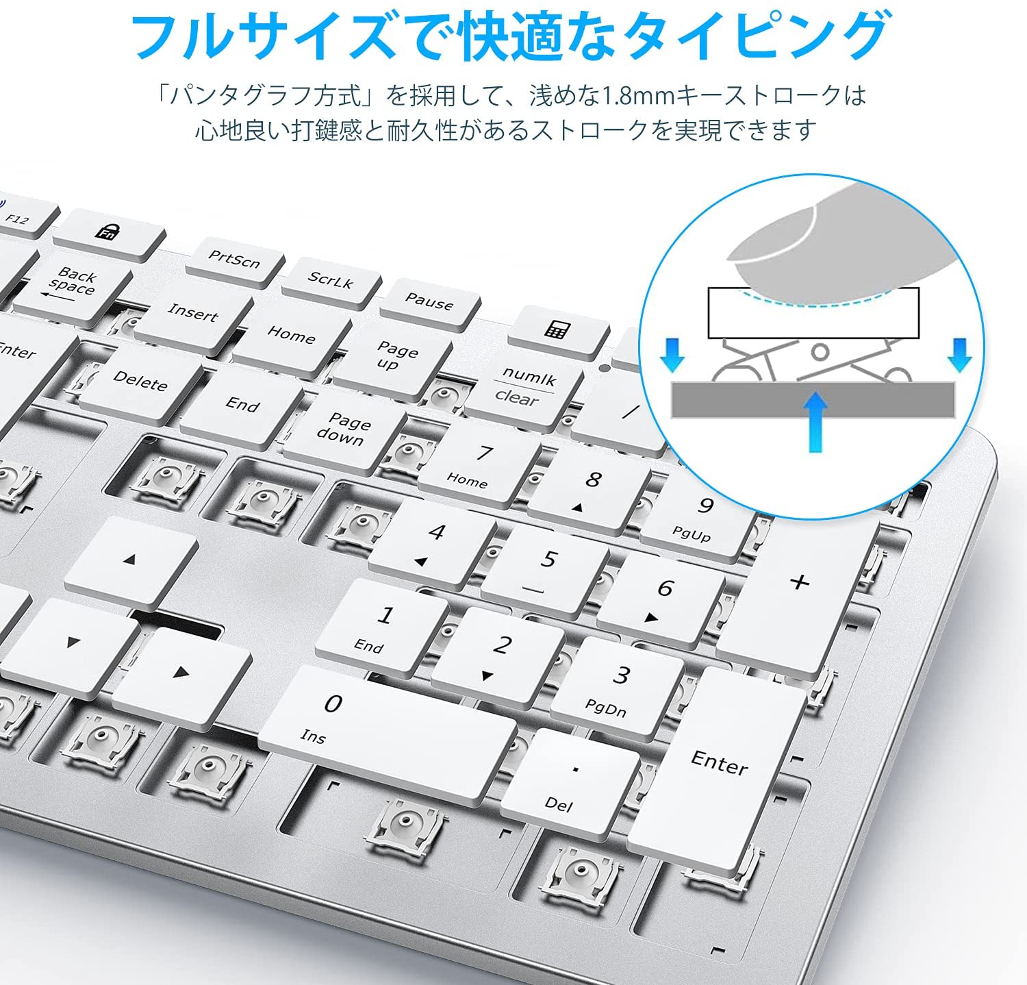 キー構造には一般的なノートPCと同じ「パンタグラフ方式」。