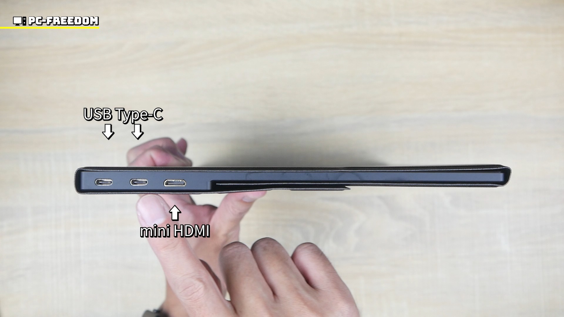 インターフェースは、画面に向かって右側に Mini HDMI とフルファンクションの Type-C ポートが2つ。