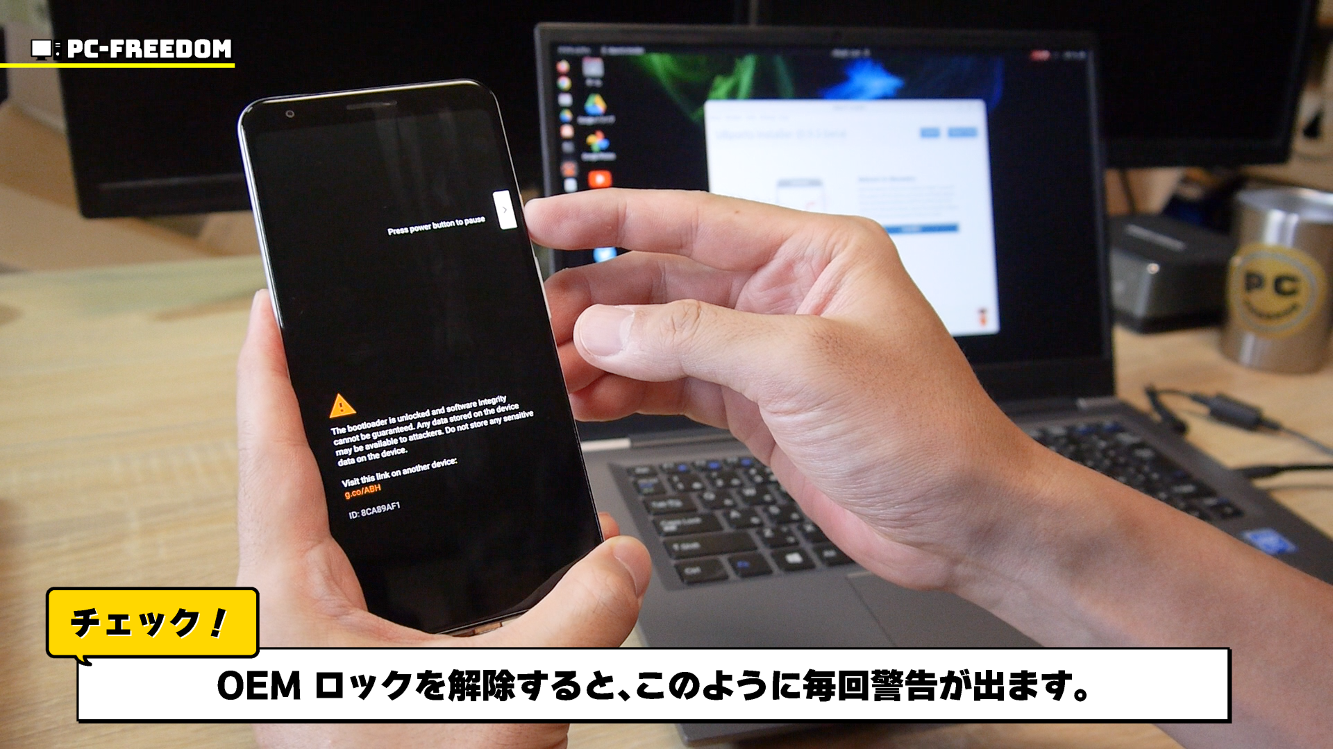 カスタム ROM を導入する際に Bootloader をアンロックするのですが、Bootloader をアンロックするとデータはすべて初期化されてしまいます。