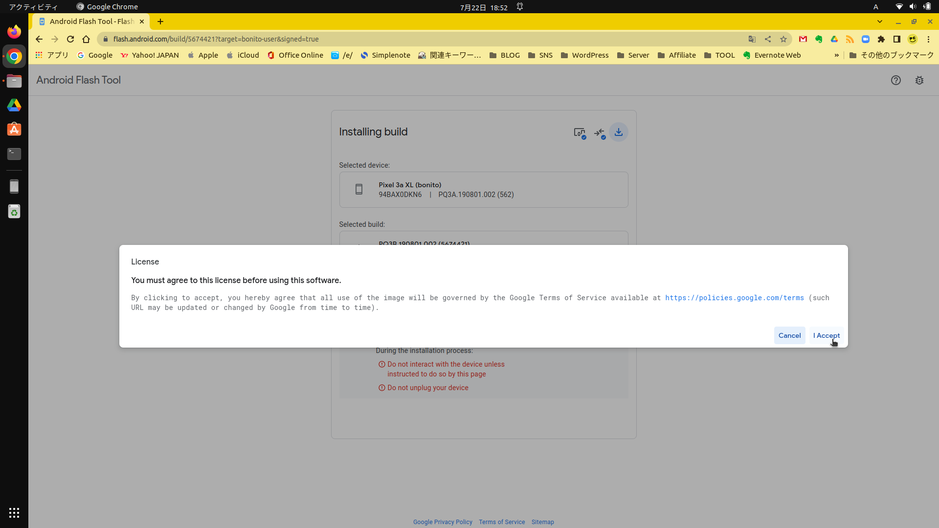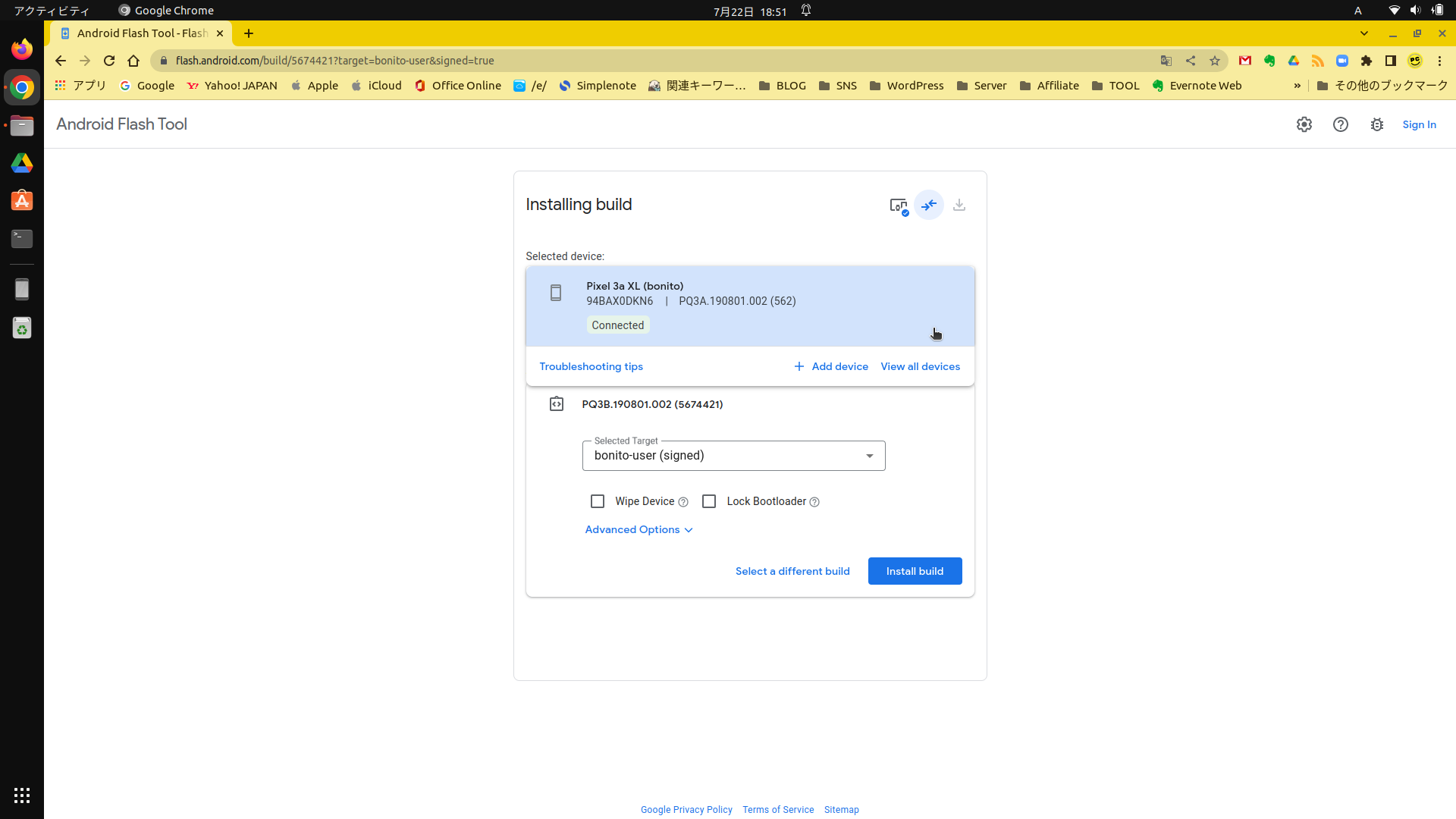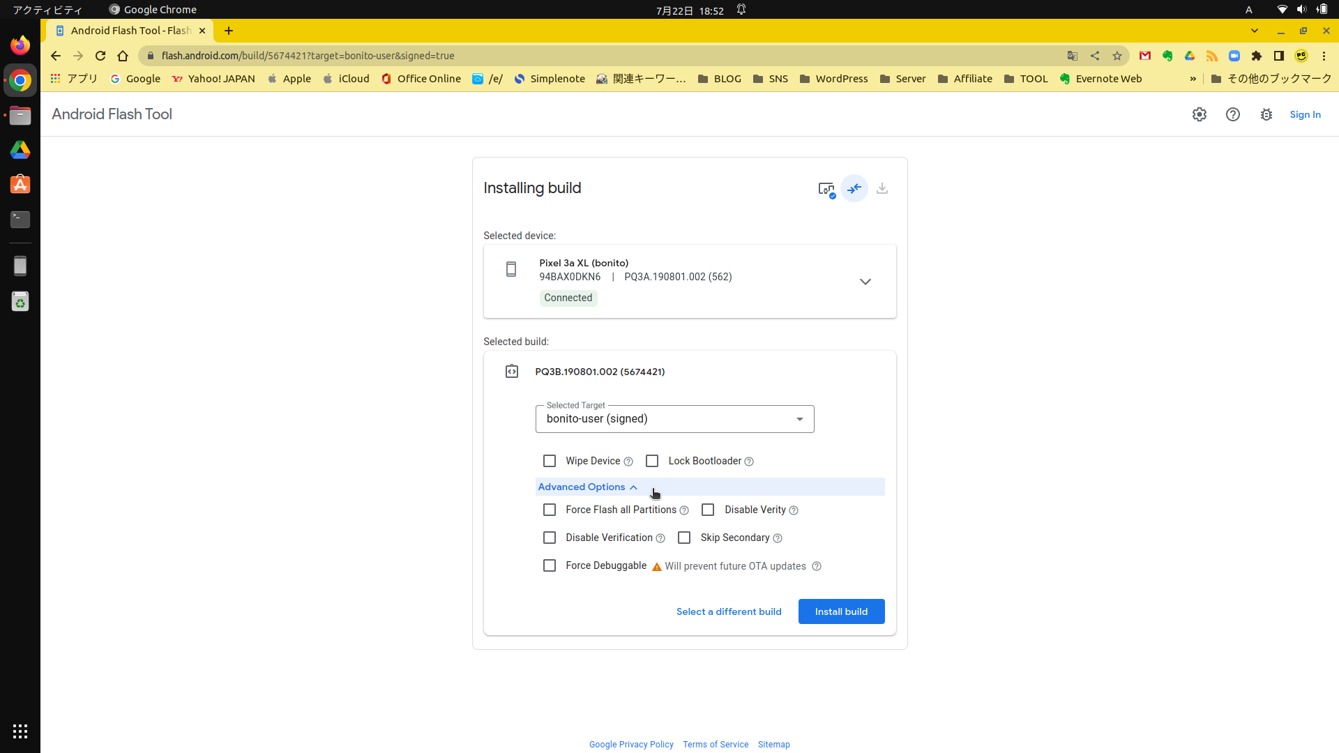 そこで、もう一度サイトのドキュメントを確認したところ、Pixel 3a/3a XL に Ubuntu Touch を導入する際には、必ず工場出荷時のイメージ、ビルド番号「PQ3B.190801.002」にしておかなければいけませんでした。