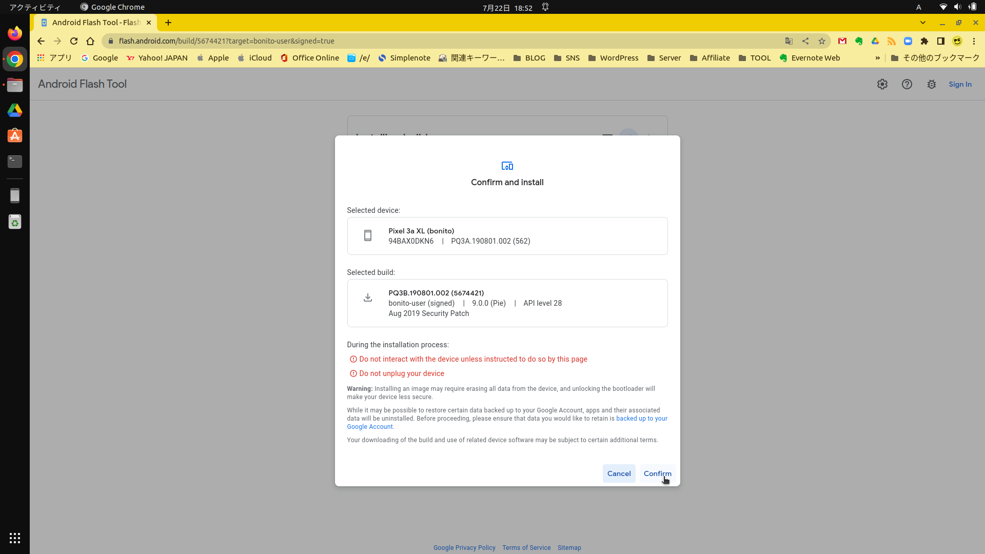 で、今回使う Pixel 3a XL は、Ubuntu Touch を試すだけに手に入れたものなので、必要なデータとかないためそのままインストールしてしまいますが、残しておきたいデータなどがある場合には、Google ドライブにバックアップしたりしておくことをオススメします。