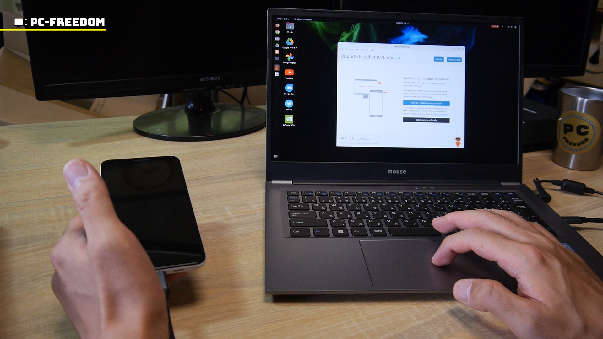 ですが Ubuntu Touch の場合、もちろんパソコンにはつなぎますが、一般的なカスタム ROM よりも手順がだいぶ少ないです。