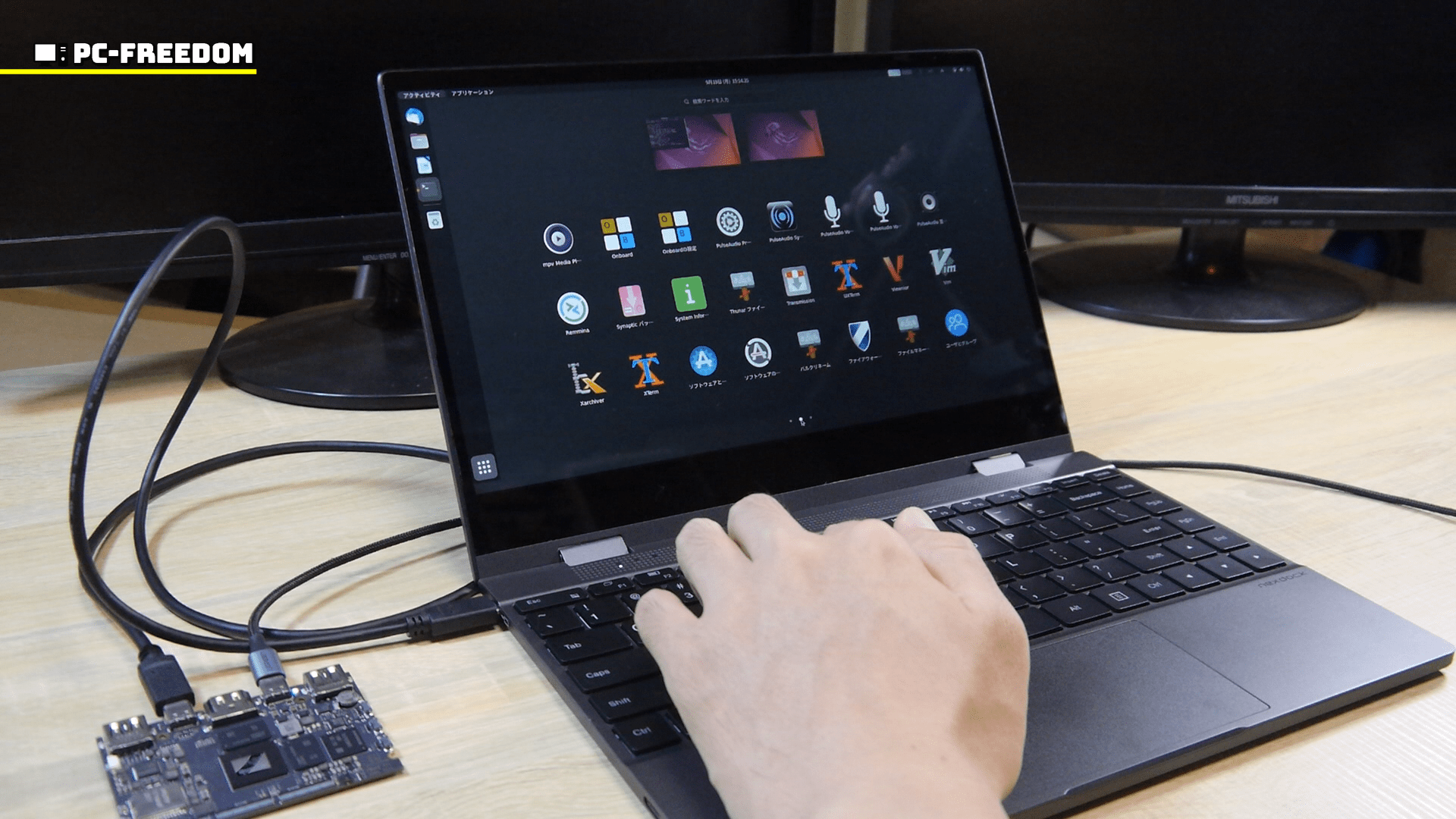 とりあえず、あれやこれや試してみましたが、最終的な接続は映像出力とキーボード接続兼用で USB-C と、電源用の USB-C への接続だけとなりました。