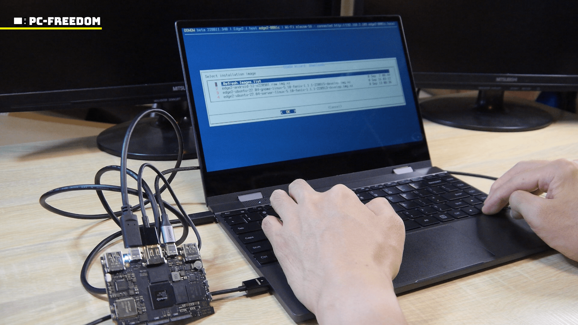 Edge2 も VIM4 と同様に Khadas 独自の OOWOW システムによって、インターネット上から OS をダウンロードおよびインストールできます。