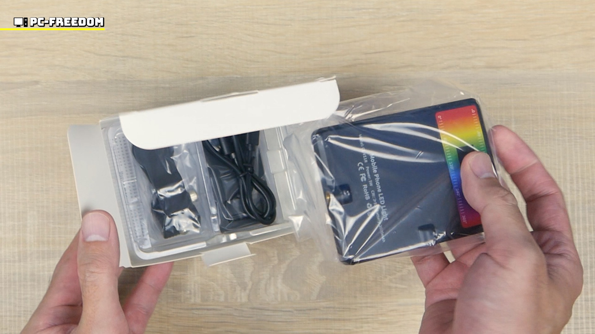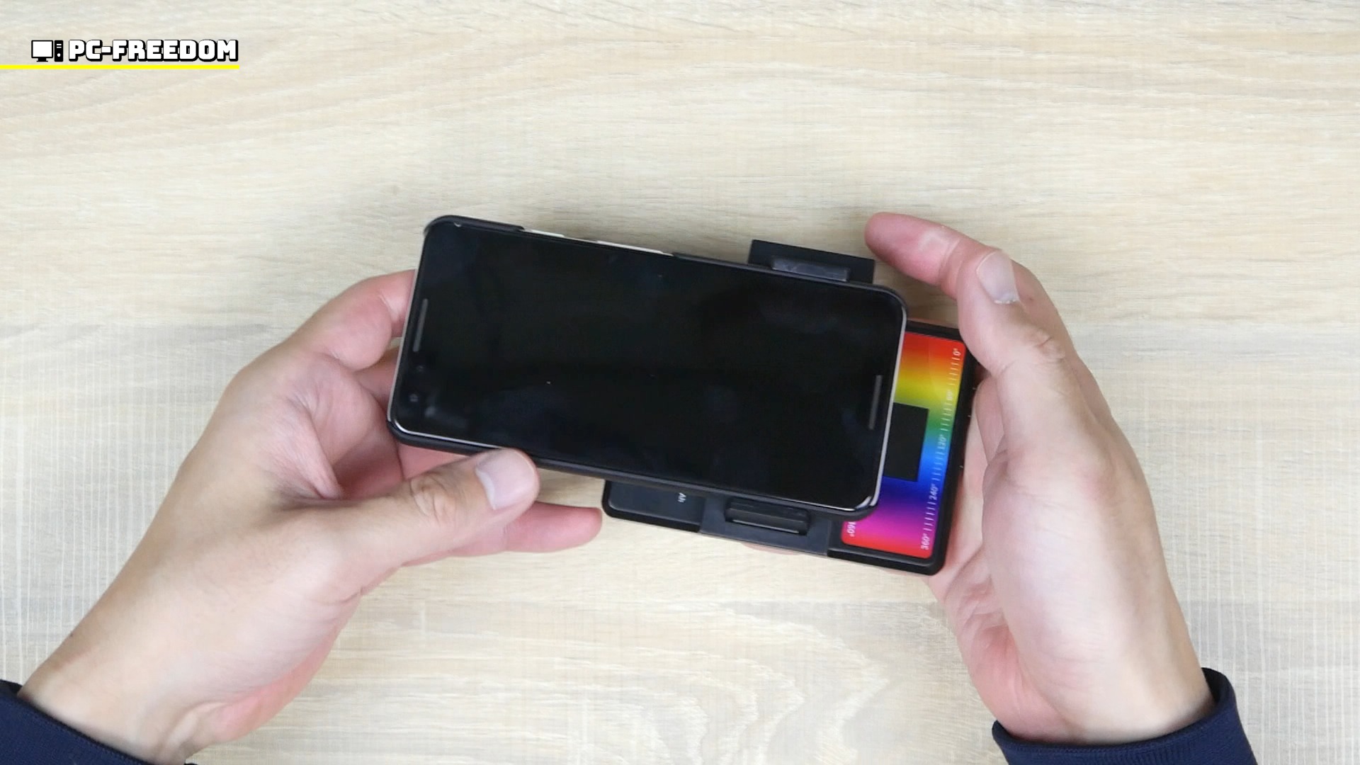 スマホの背面に取り付けて、フィルライト (キーライトによってできた影や暗い部分の明るさを補うライト) としての使い方が進められています。というか、説明書を見たら「LED Fill Light」になってました。