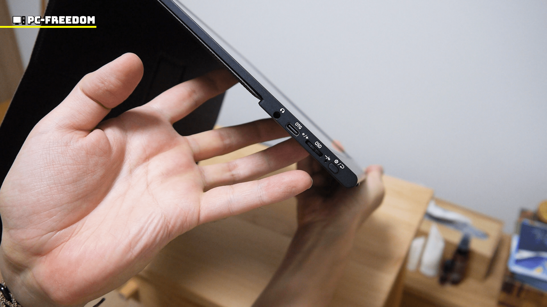 他のモバイルモニターにもありましたが、基盤やコントローラーなどの配置のため段差のある筐体です。