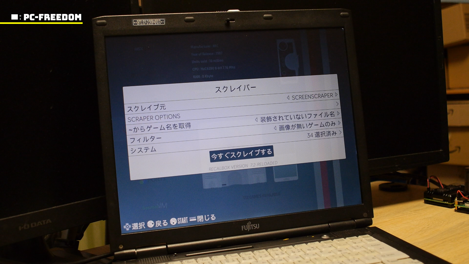 Recalbox でのスクレイピングは、メインメニューのスクレイパーで実行できます。