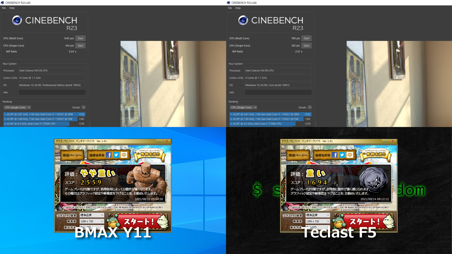 スペック的に違いがあるのは、BMAX Y11 の CPU は Gemini Lake N4120 に対して、Teclast F5 の CPU は Gemini Lake N4100 。