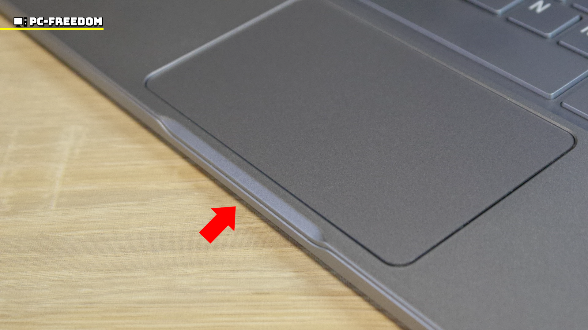 ですがその分、タッチパッドの部分が凹んでます。