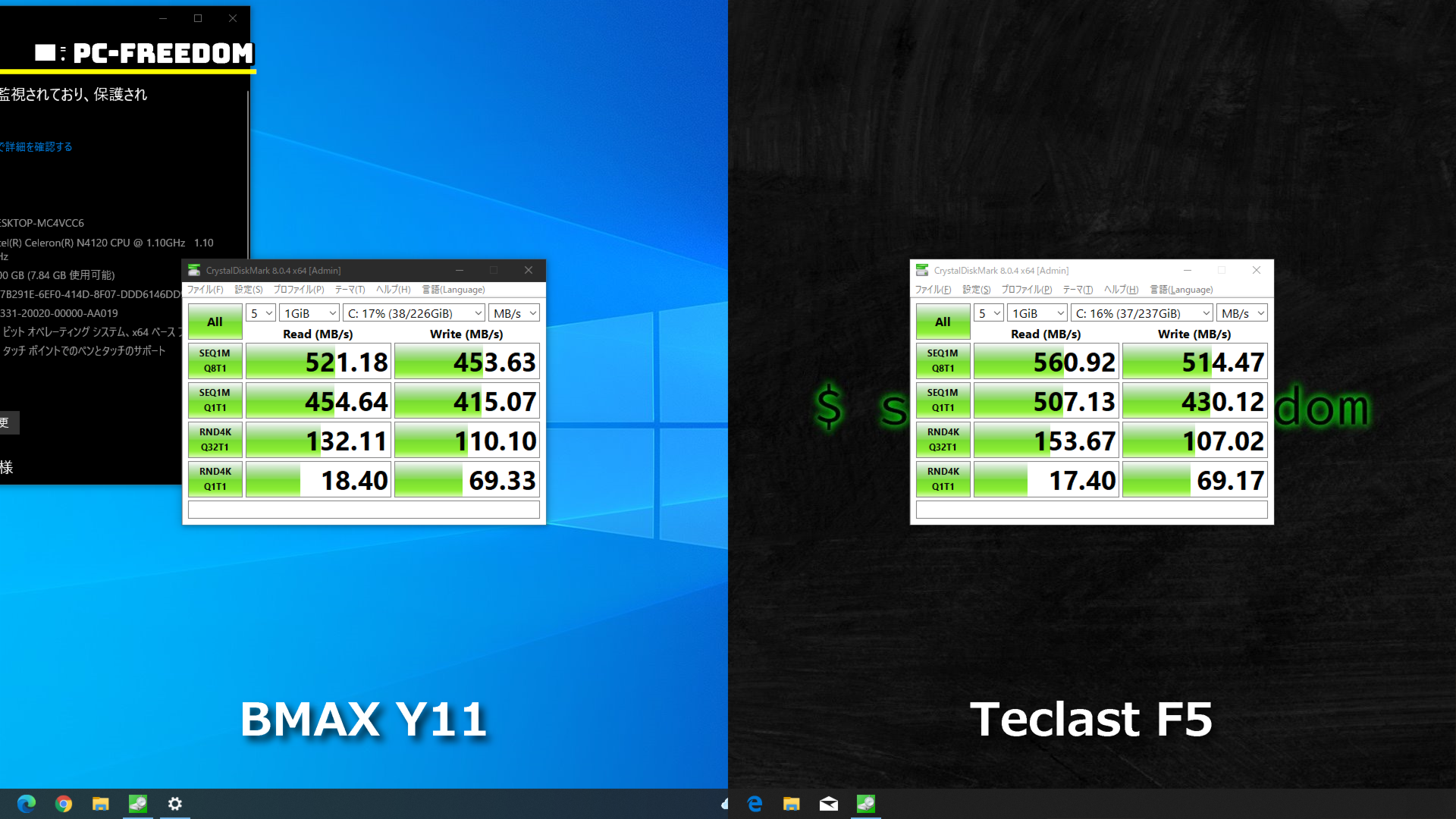 思った以上に BMAX Y11 のスコアのほうが良いです。