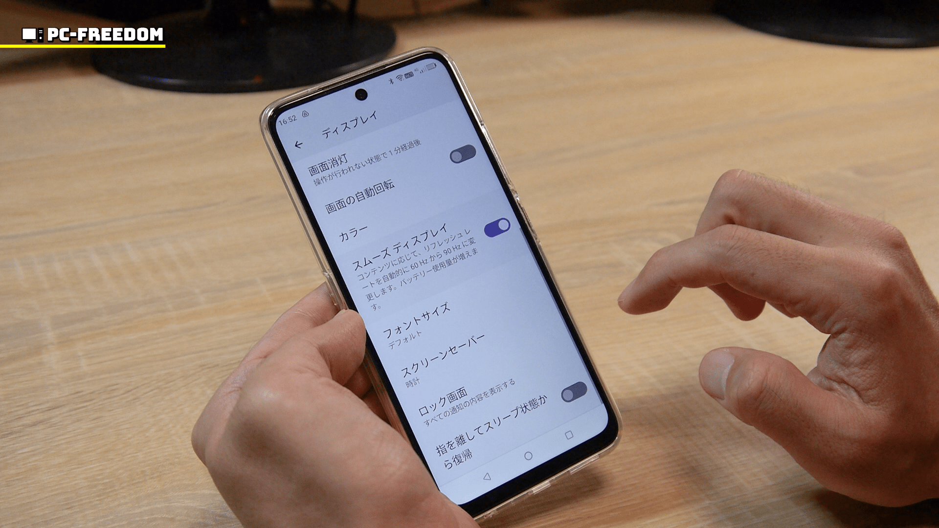 バッテリーの消費が激しくなるという理由から、初期設定では 60Hz になっていますが、気持ち的に 90Hz のまま使いたいですね。