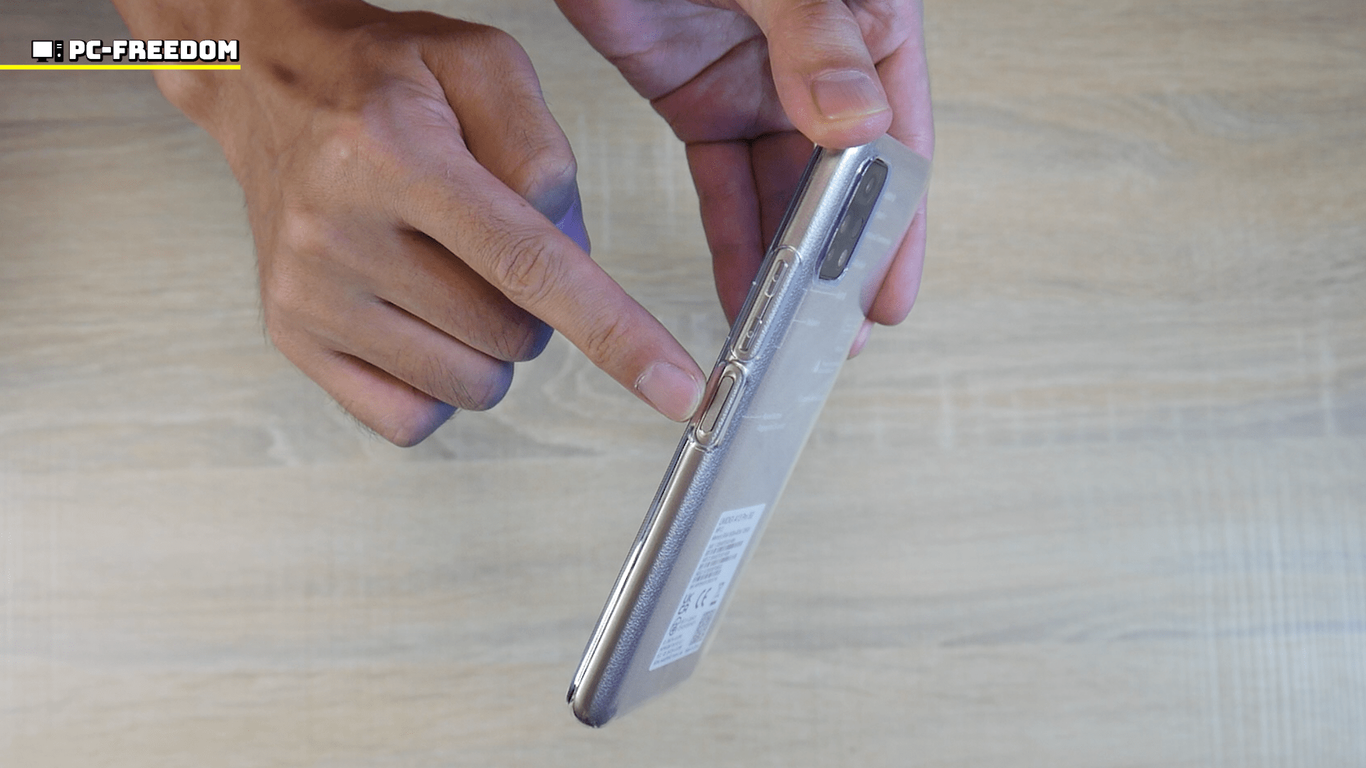 次は本体左にある、SIM スロットそばのボタン。