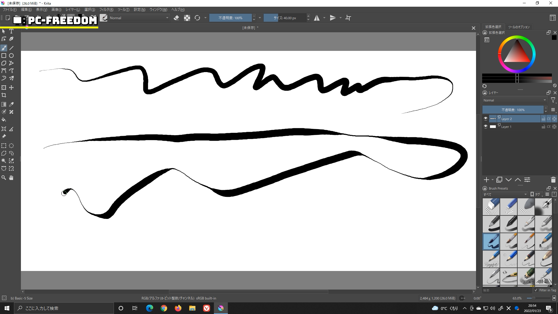 GIMP ではなぜだか筆圧感知というか、ブラシ自体がうまいこと機能しません。