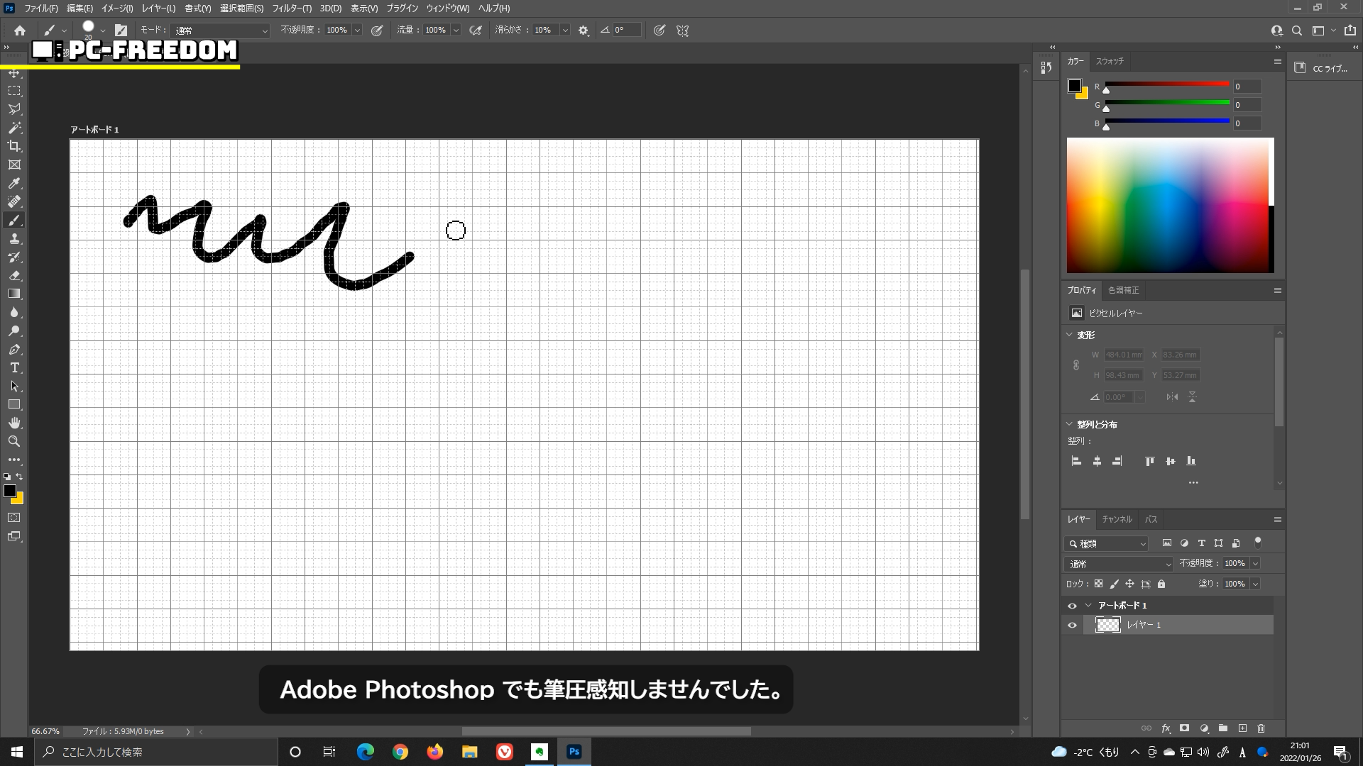 ちなみに Adobe Photoshop でも筆圧感知しませんでした。