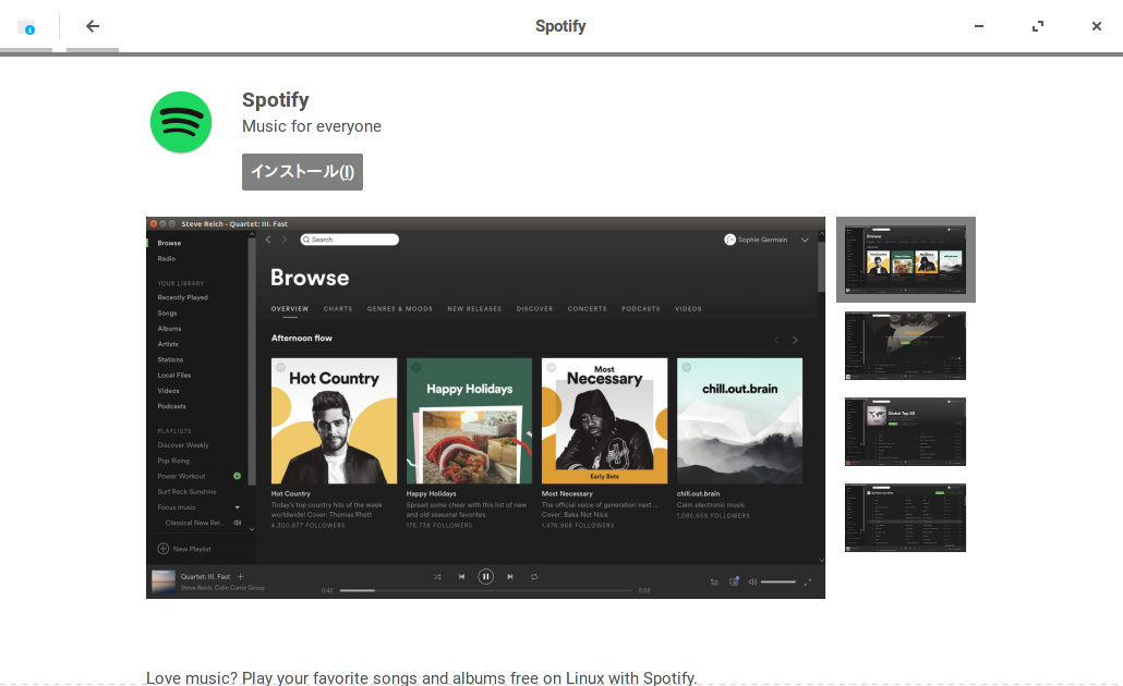 Linux でも Spotify が使えるなんて。