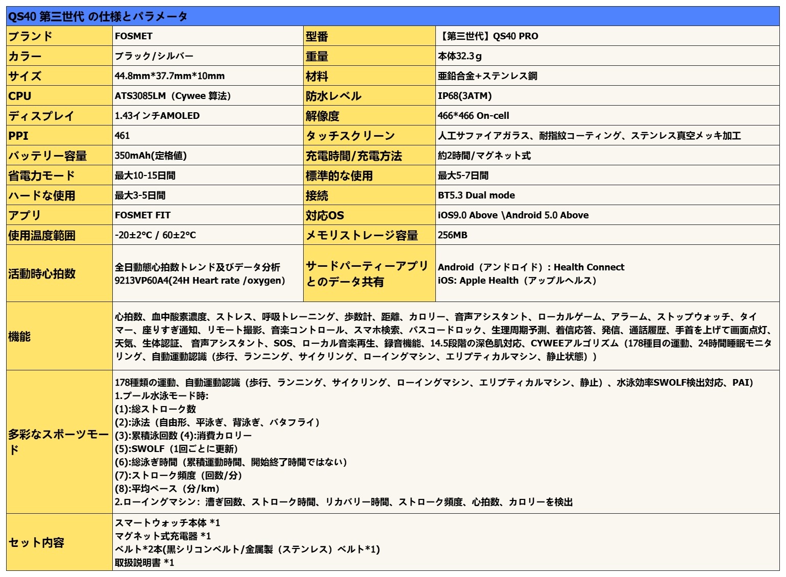 さらに、今回紹介している QS40 第3世代の真の進化は、CyweeMotionアルゴリズムの統合です。これにより、単なる機能増加ではなく、睡眠や活動量計測におけるデータの信頼性が医療グレードに近づいていることを意味します。センサーとソフトウェアの両輪で精度を高めている点は、この価格帯では大きな特徴の一つです。