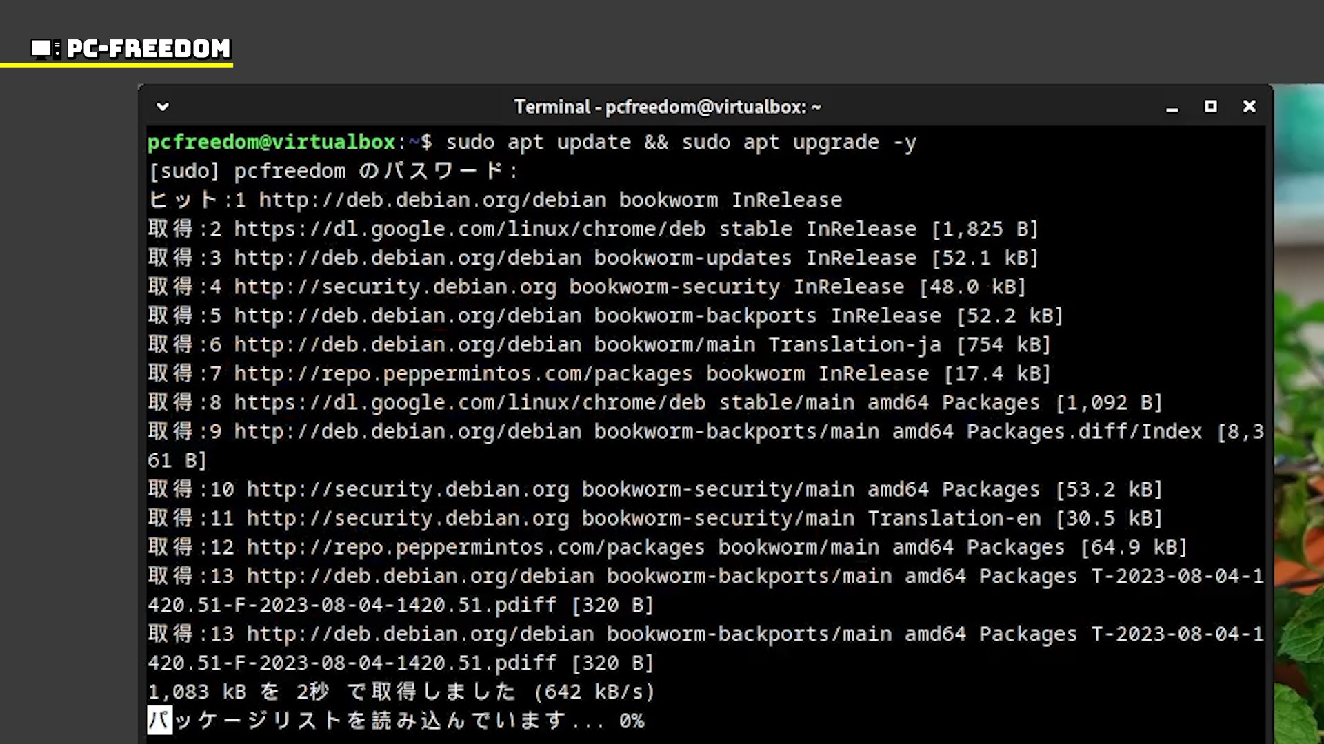 これはシステムのアップデートの確認と、アップデートがあった場合のそのインストールを指定するコマンドです。Debian や Ubuntu から派生した Linux で使えるコマンドです。システムを最新に保つコマンドなので、起動のたびに実行することをおすすめします。他のコマンドは知らなくても、このコマンドは覚えておいたほうが幸せになれるコマンドです。